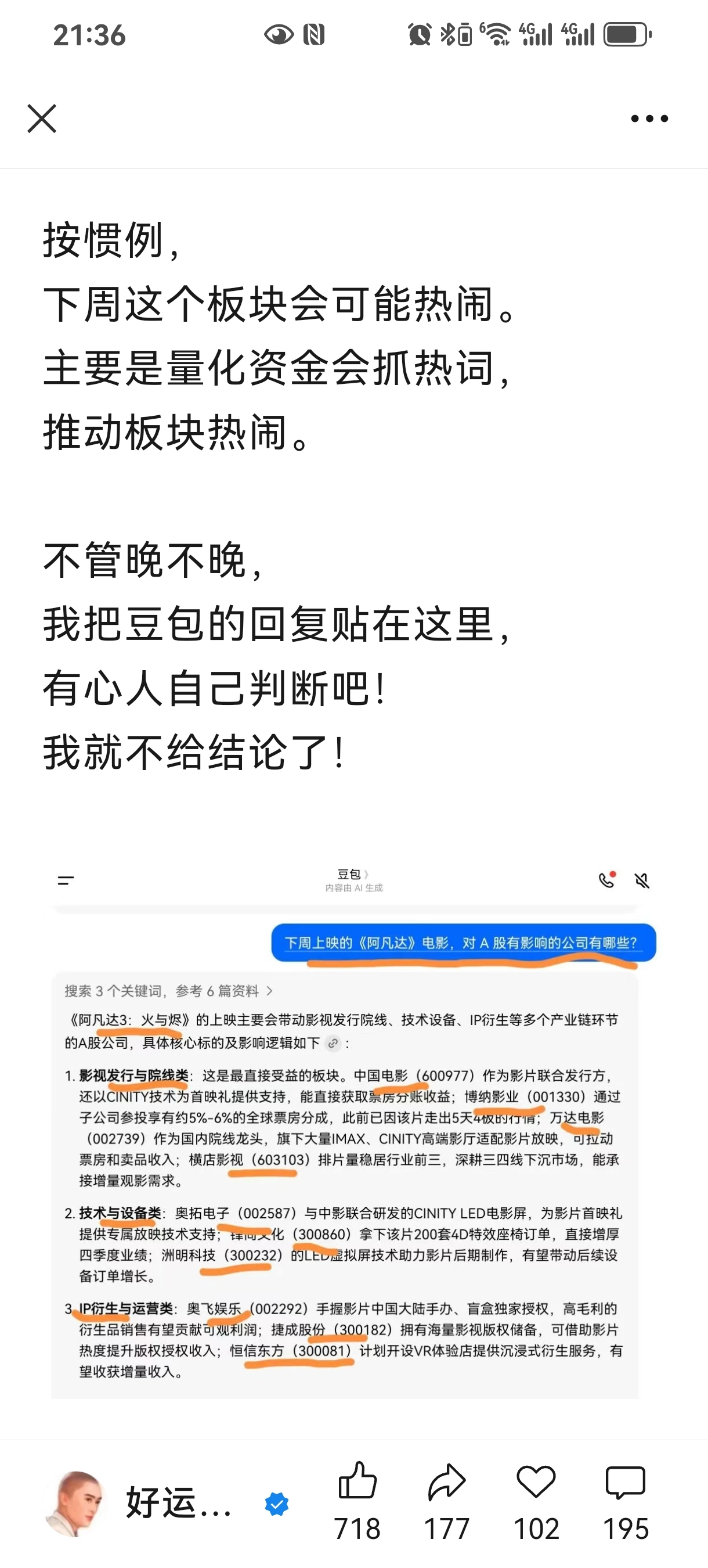 郑重声明:用户在财富号/股吧/博客等社区发表的所有信息(包括但不限于文字、视频、音频、数据及图表)仅代表个人观点,与本网站立场无关,不对您构成任何投资建议,据此操作风险自担。请勿相信代客理财、免费荐股和炒股培训等宣传内容,远离非法证券活动。请勿添加发言用户的手机号码、公众号、微博、微信及QQ等信息,谨防上当受骗!
