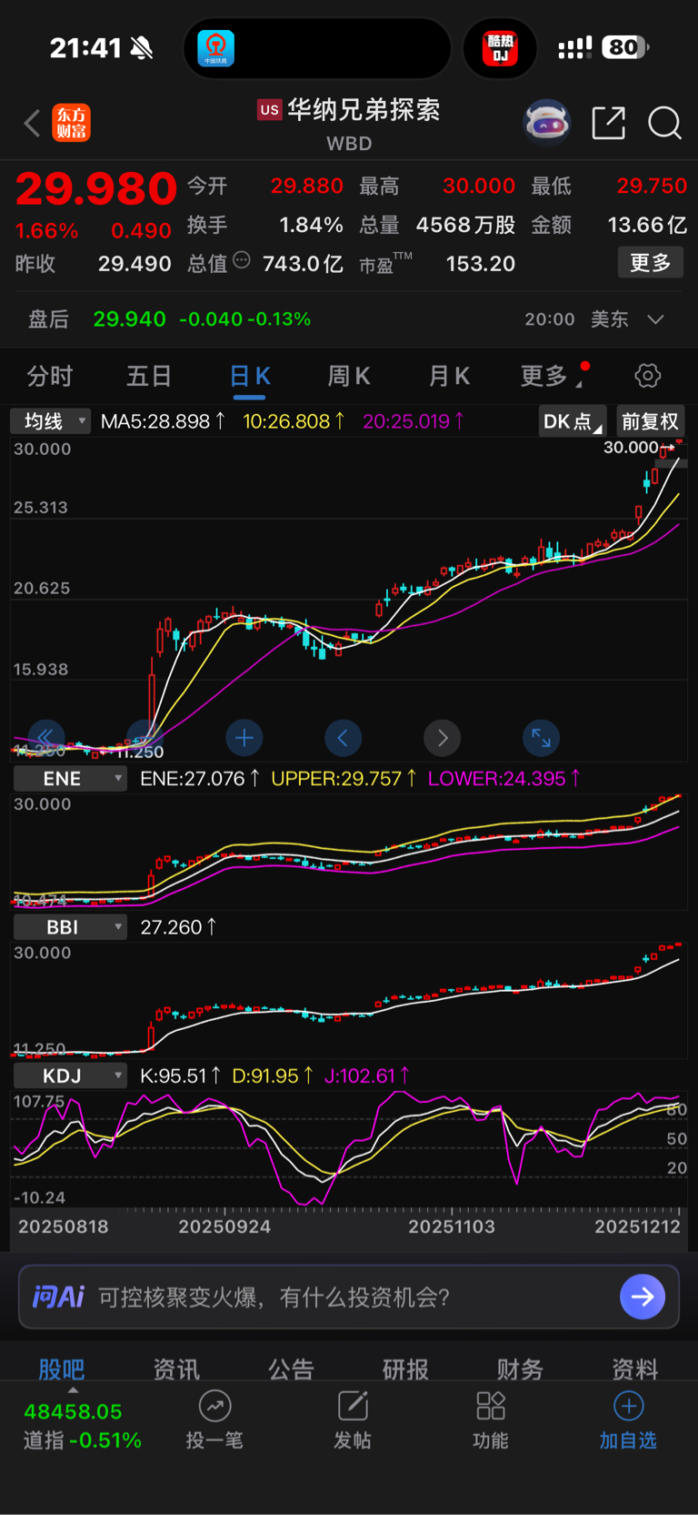 美股的华纳兄弟就是影视电影股,股价继续新高大涨!还有就是电影影视就是文体娱乐消费