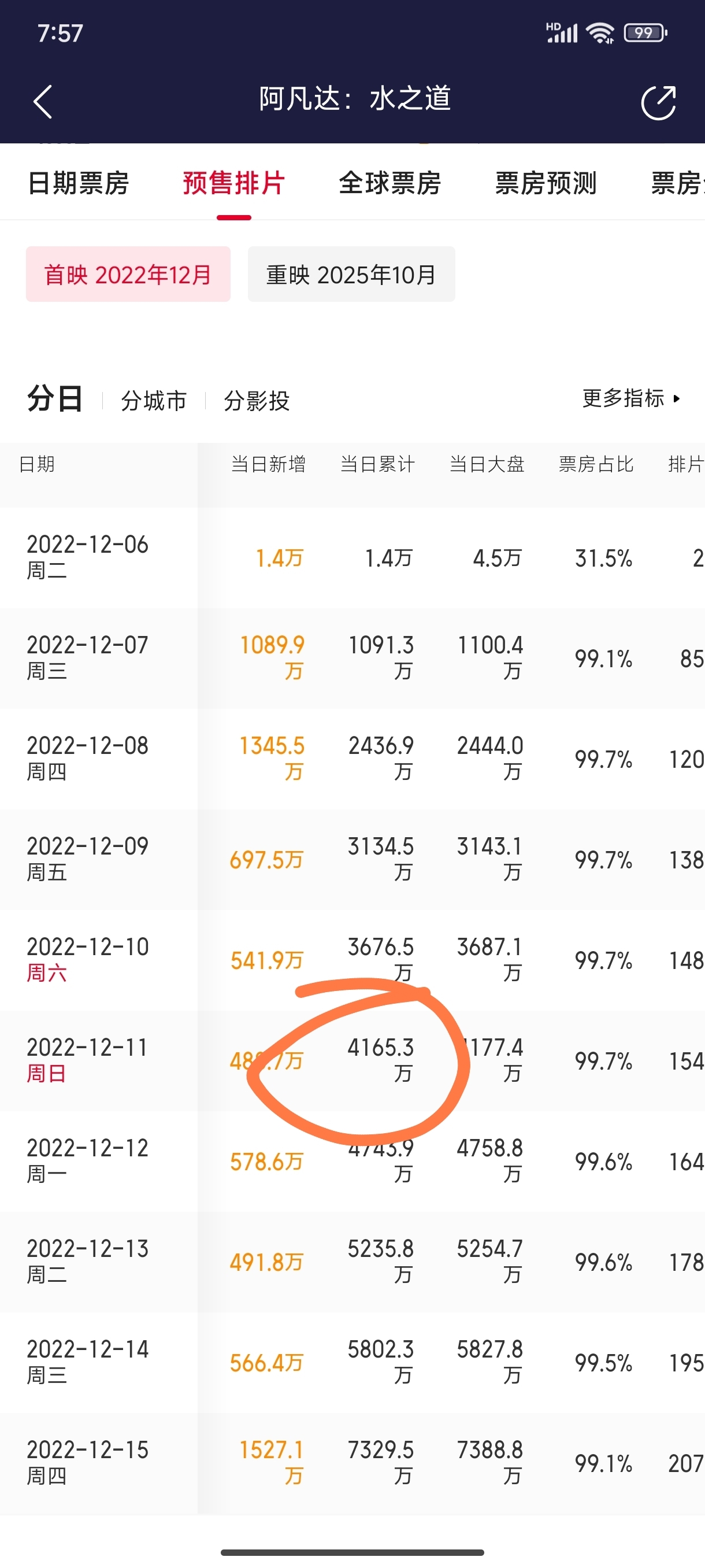 $博纳影业(SZ001330)$ 阿凡达3预售和阿凡达2做比较,阿凡达2周日已经4100多万了,阿凡达3周日才956万,差了4倍