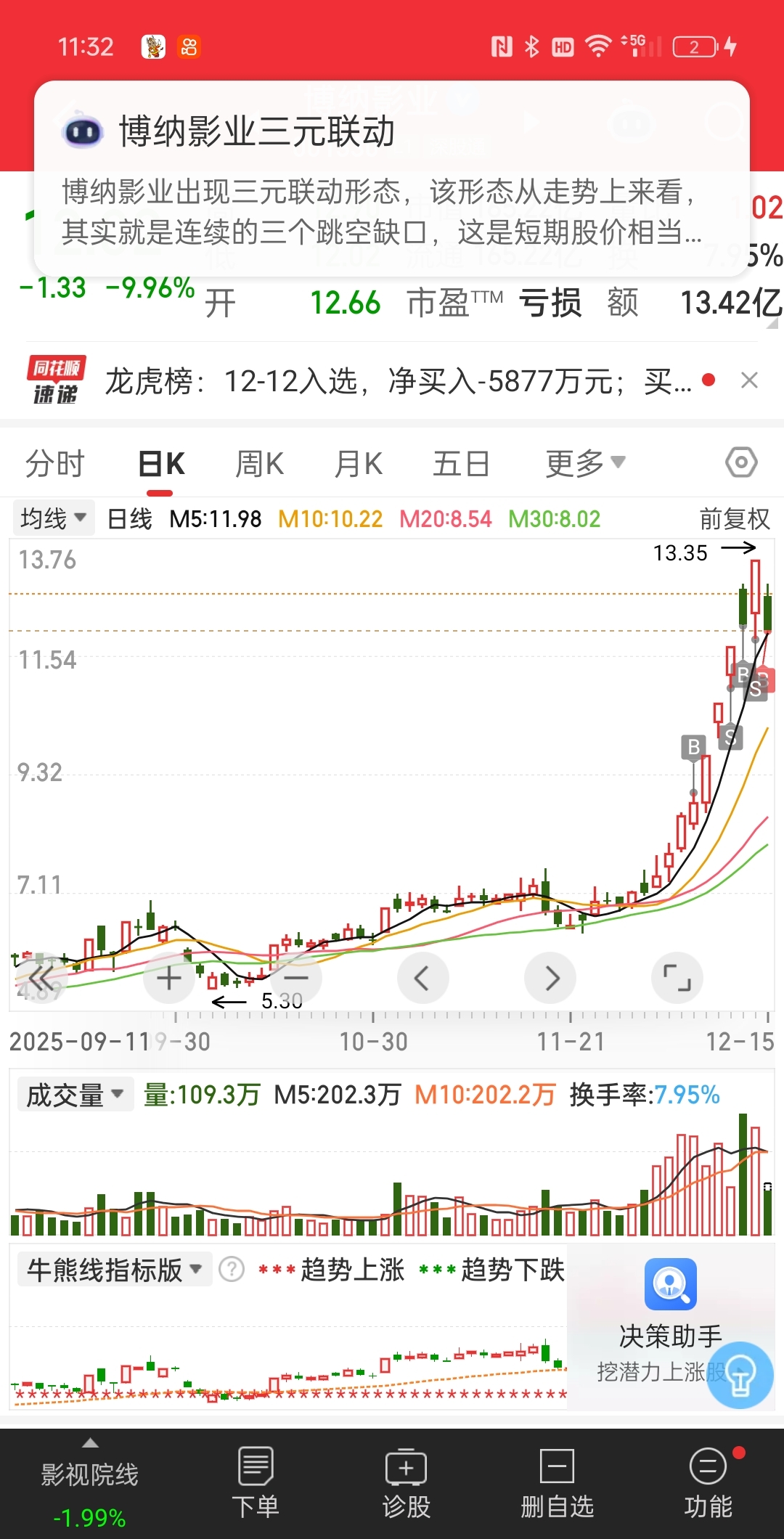 $博纳影业(SZ001330)$ 开盘追高又进来了,有点后悔,,,