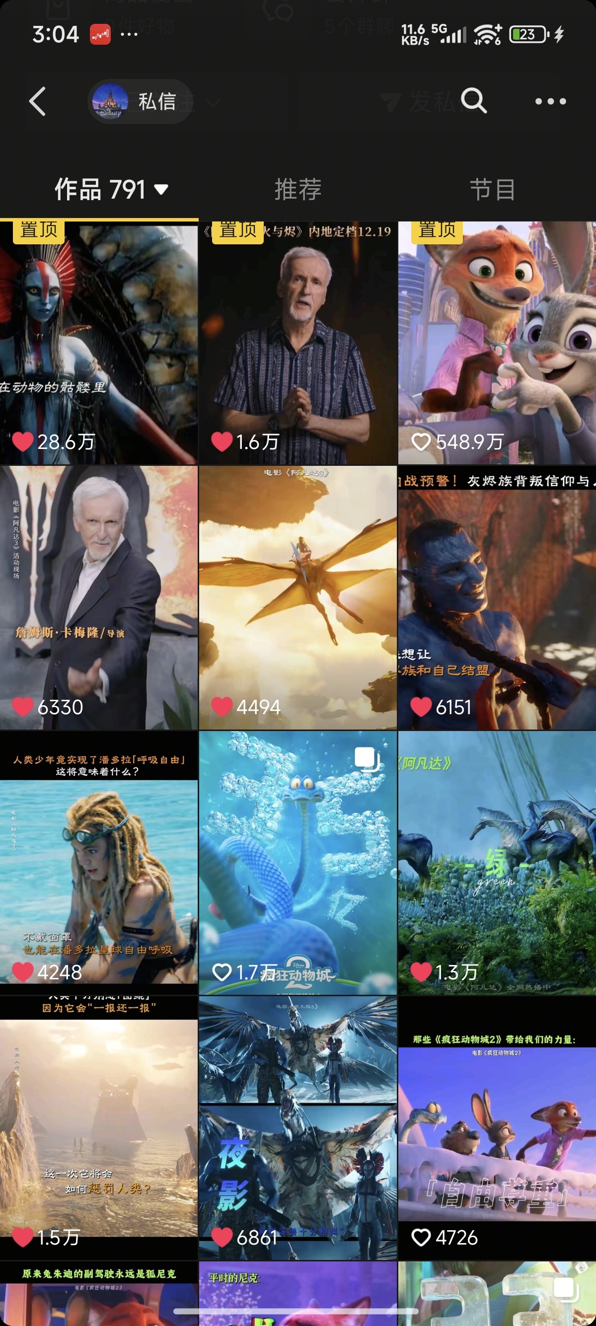$博纳影业(SZ001330)$ 时刻关注,什么时候开始正式推广?今天开始大量更新阿凡达作品,并且阿凡达作品全部置顶了,昨天还全部都是疯狂动物城,不是我说什么,前几天根本就没宣传,真正用心的就会发现,很多都是疯狂动物城,今天开始正式推广
