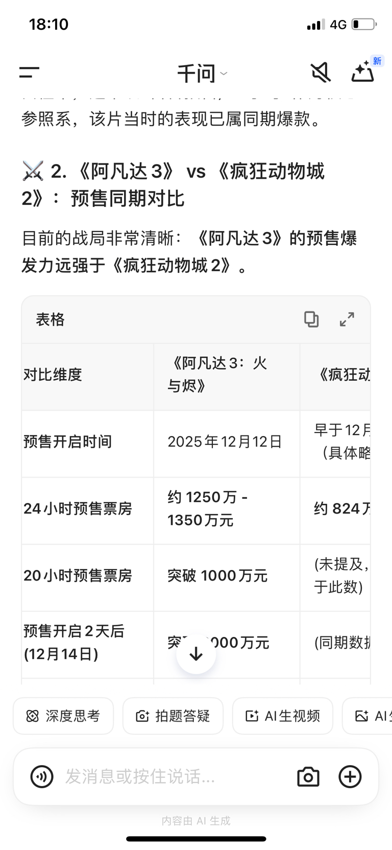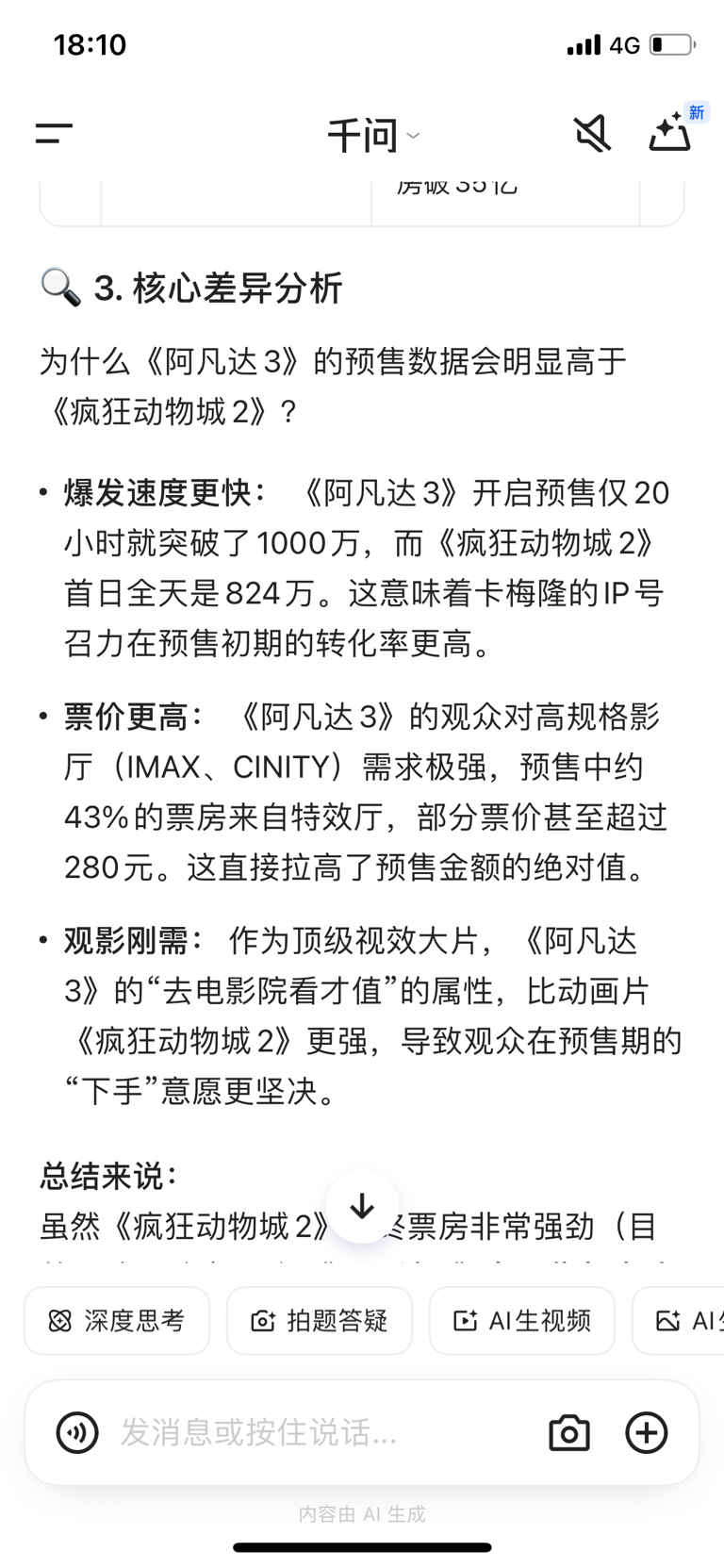 同期预售,阿凡达3业绩,选超动物疯狂成2。阿凡达3门票肯定超预期!票房不担心。