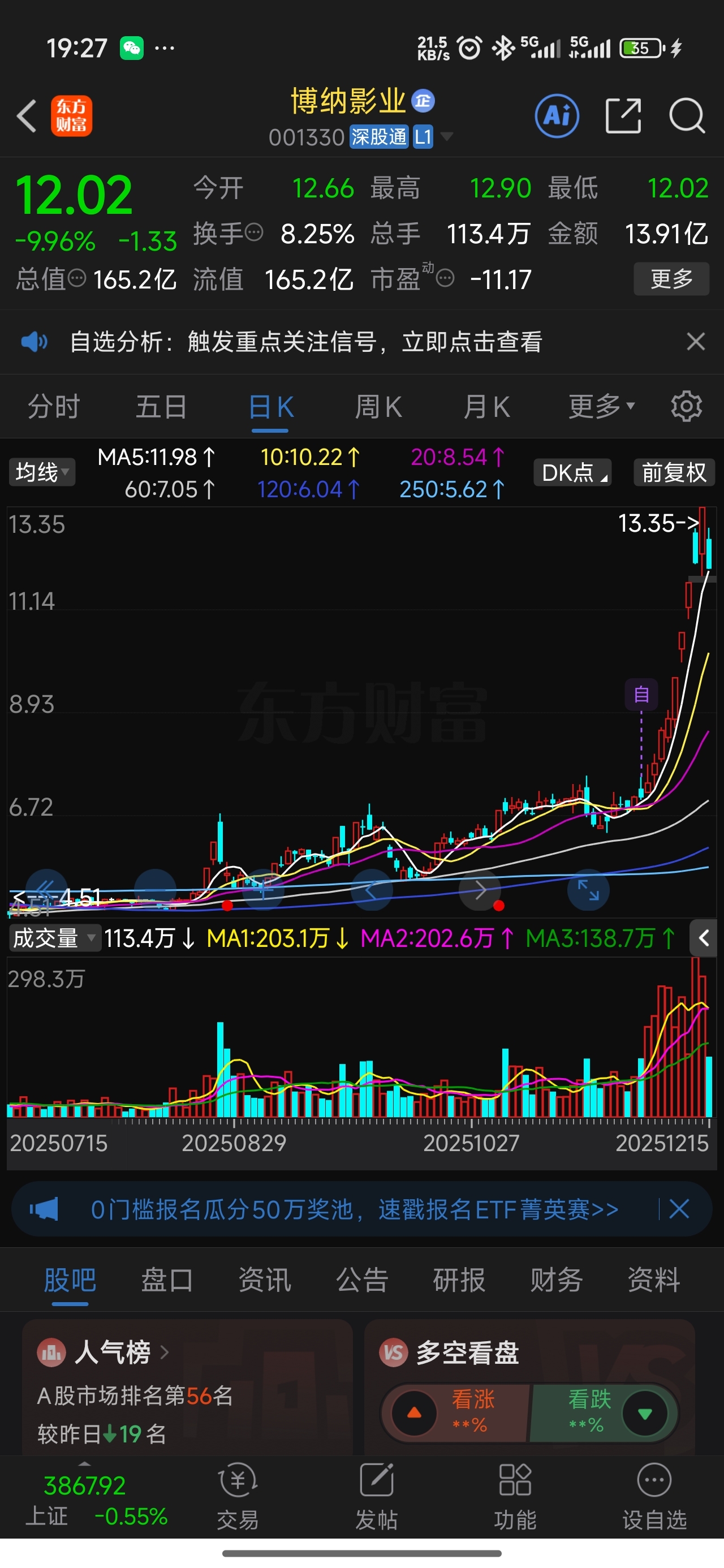 $博纳影业(SZ001330)$ 启动前挑选出来这个股,但我到现在一直没钱买,我的资金都被套牢了。我想说的是,就这个股,迎着利好和开播,就算跌停都可以狂出货,出多少赚多少,这个时候去抄底,完全符合主力的想法。