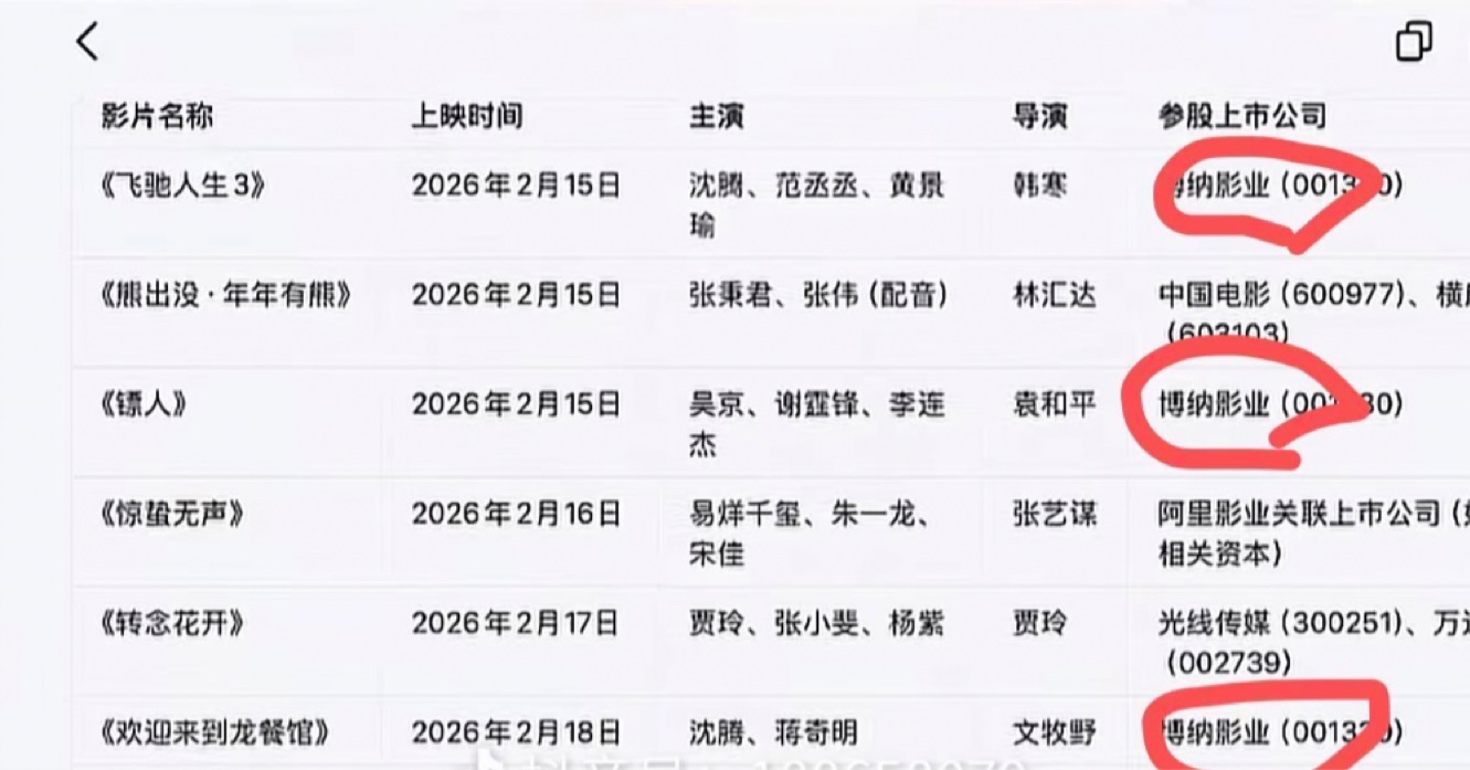 $博纳影业(SZ001330)$ 博纳牛的在于控股子公司可以投资好莱坞的大片,我周五高位进来的,今天跌停了,没关系我坚定持有,大不了套我到明年。春节档期还有好几个博纳投资要上映的电影。飞驰人生也很好看呀。有逻辑的上涨怕个锤子。