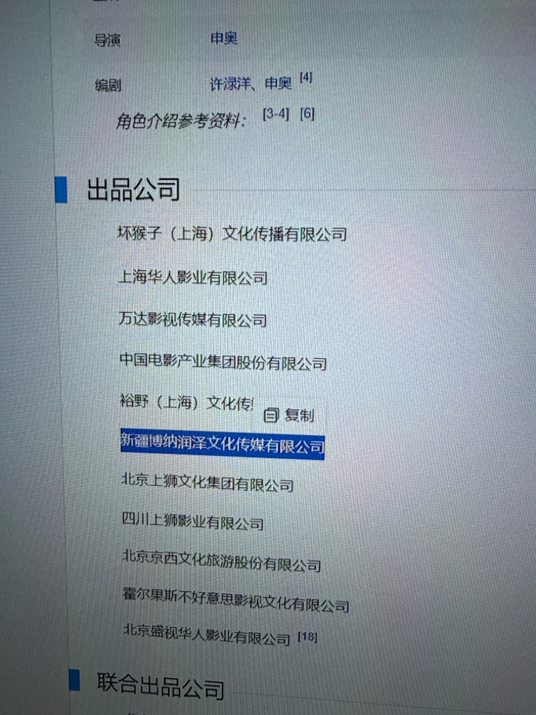 用武之地12.31出品方有博纳影业于东的子公司新疆博纳影业