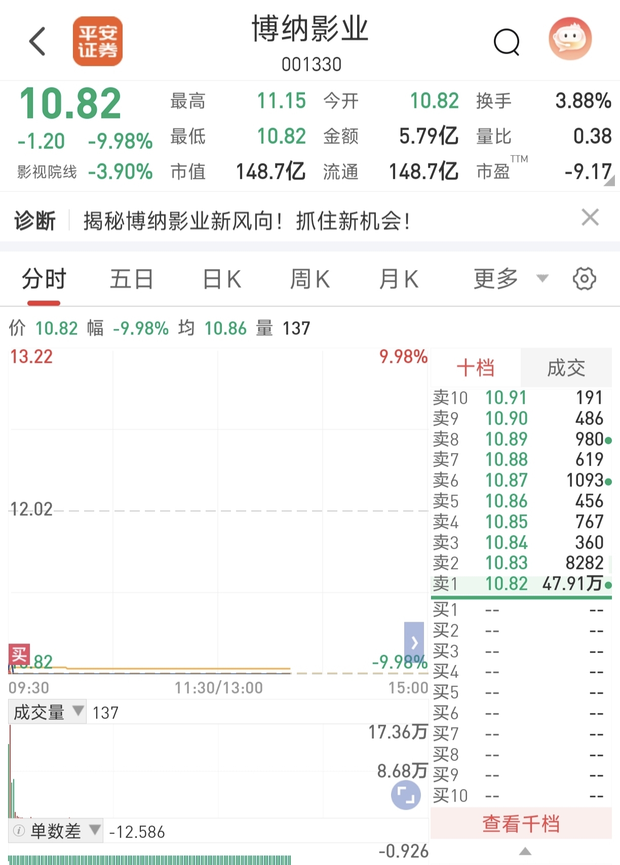 $博纳影业(SZ001330)$ 周五7个点卖的,今天拿一部分利润进来抄底了。难度买早了?