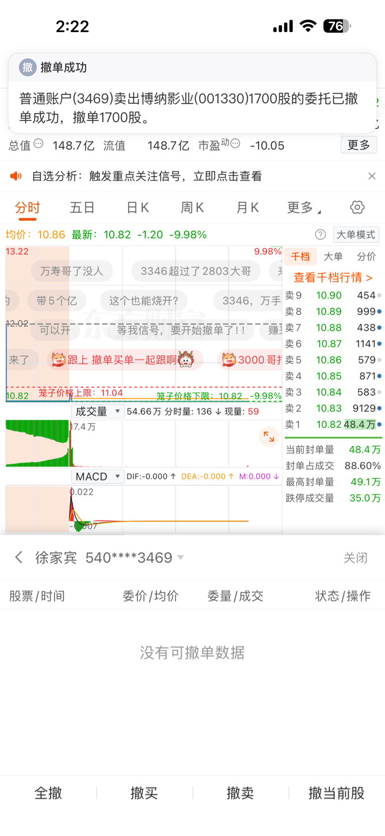 $博纳影业(SZ001330)$ 兄弟们,撤单,助力