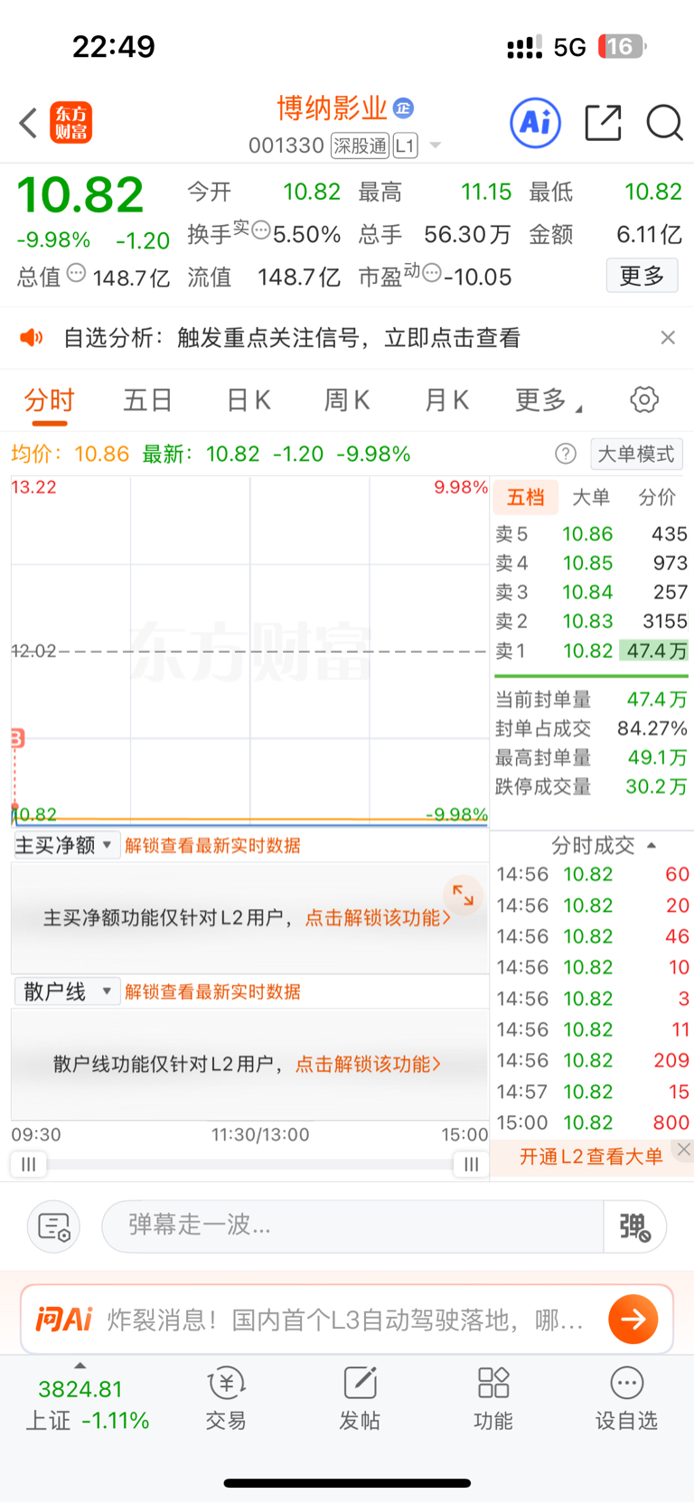 $博纳影业(SZ001330)$ 明天不会还是跌停板吧,