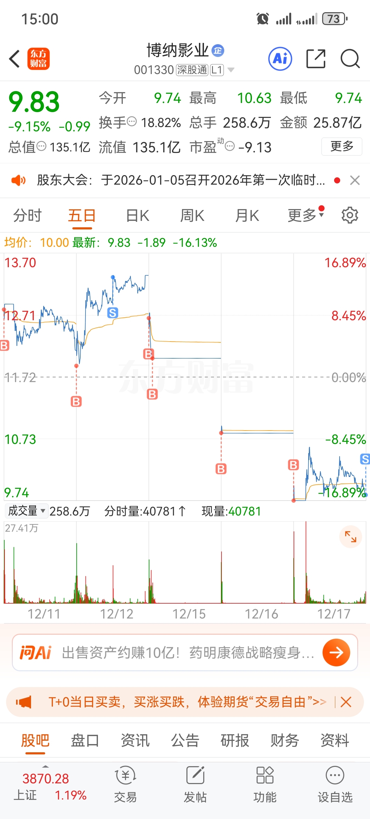 $博纳影业(SZ001330)$ 认亏出局,走势太恶劣了