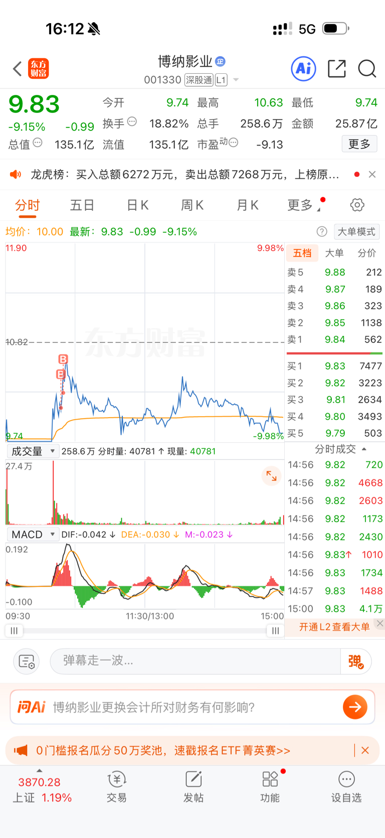 $博纳影业(SZ001330)$ 一进来就没了四个点