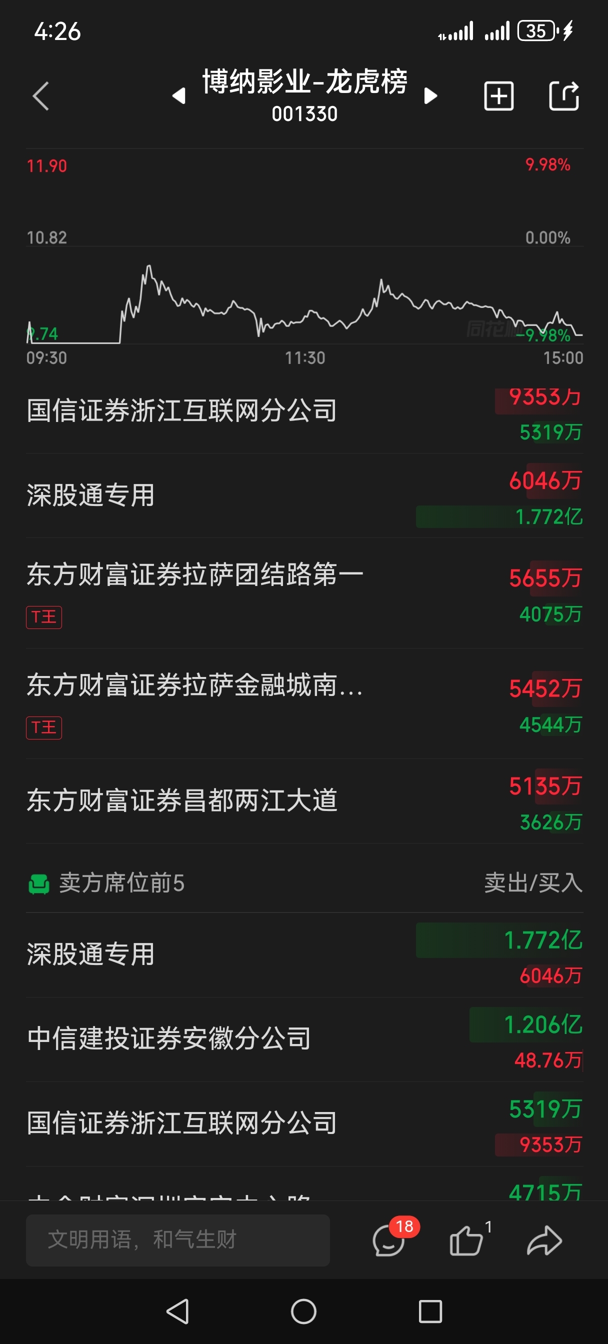 $博纳影业(SZ001330)$ 今天全是拉萨买的???