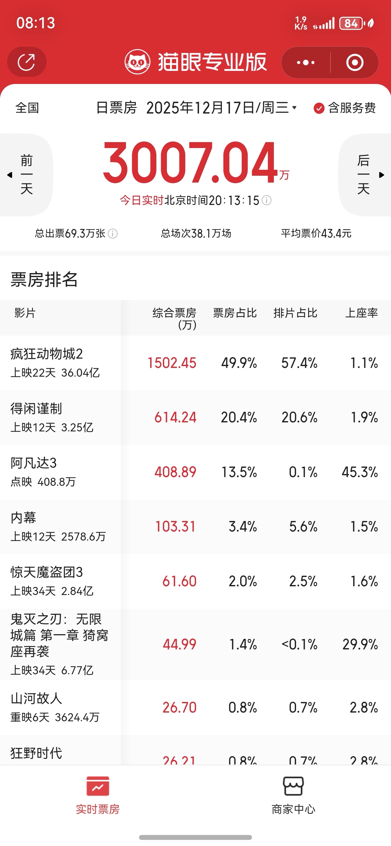 $博纳影业(SZ001330)$ 票房不高也得看排片比例吧!0.1%的排片占比拿下全日13.5%的票房占比,兄弟们都是玩股票的,如果你有一支股票只用了你0.1%的仓位给你拿下了13.5%的利润,你觉得那支票会是垃圾票?