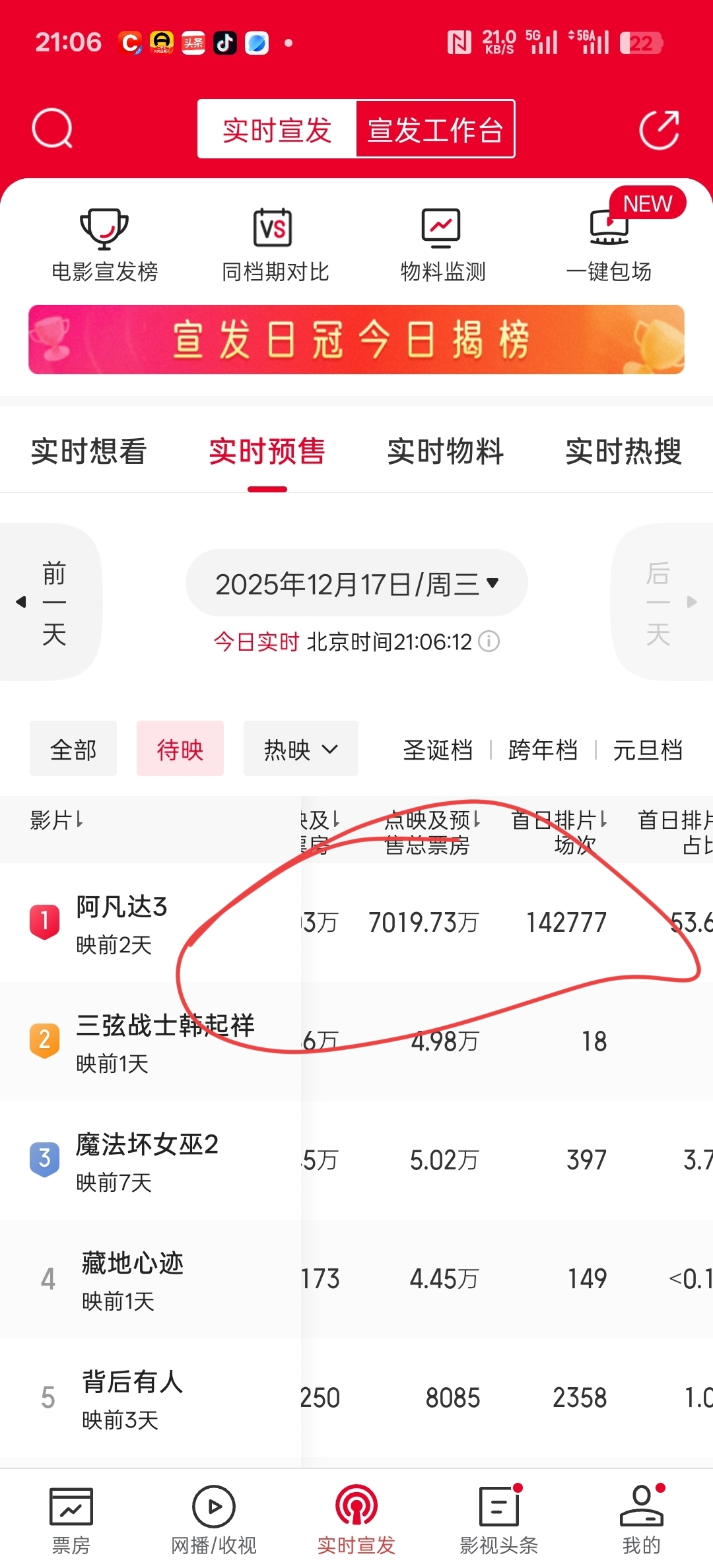 非要抬扛猫眼不到6000万?仔细看看,7000多了好吗,而且数据比昨天都是加速的