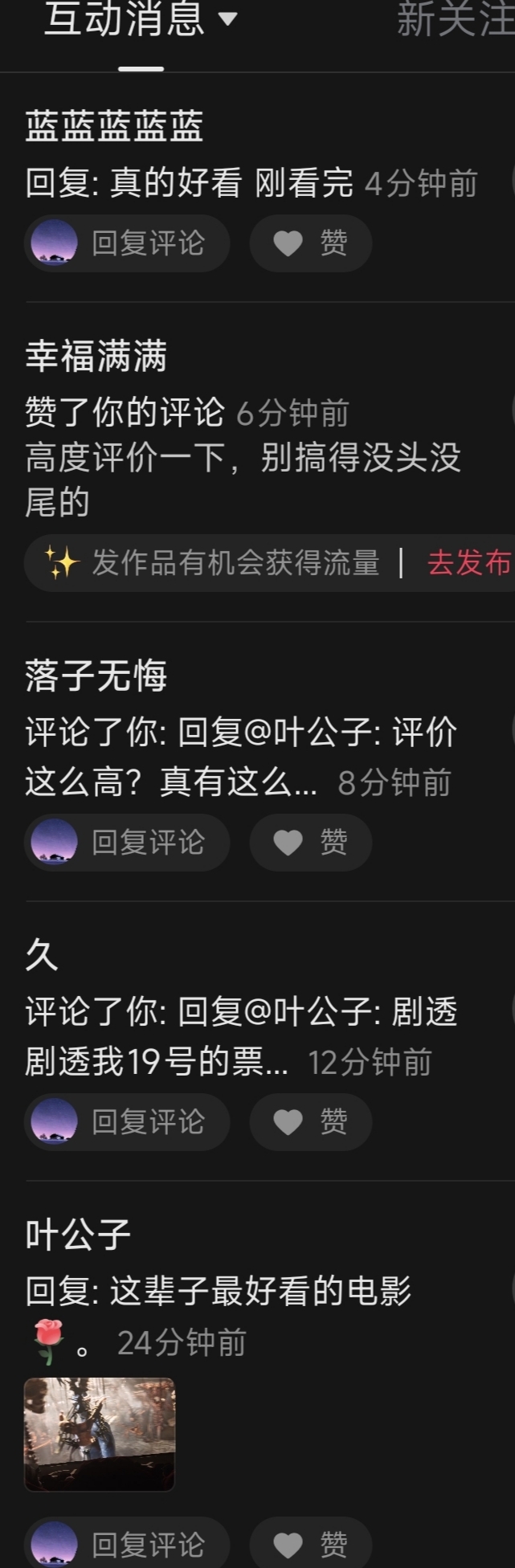 $博纳影业(SZ001330)$ 今天晚上我看到的评价,我就一直发主页,全是真实刚看完的评价