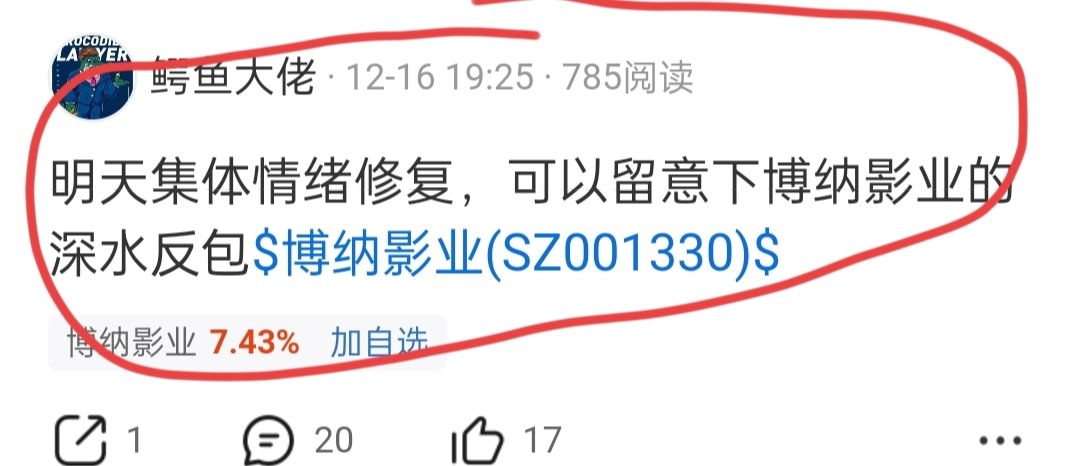 前晚预报昨日深水低吸的博纳影业今天如期反包涨停$博纳影业(SZ001330)$