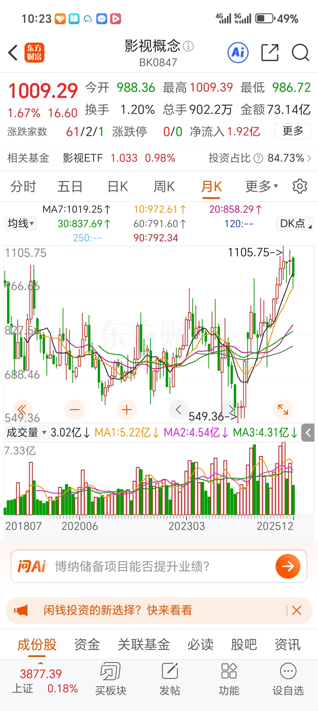 看看影视板块的月线,已经回踩10月线了,新的一轮上涨直将开始