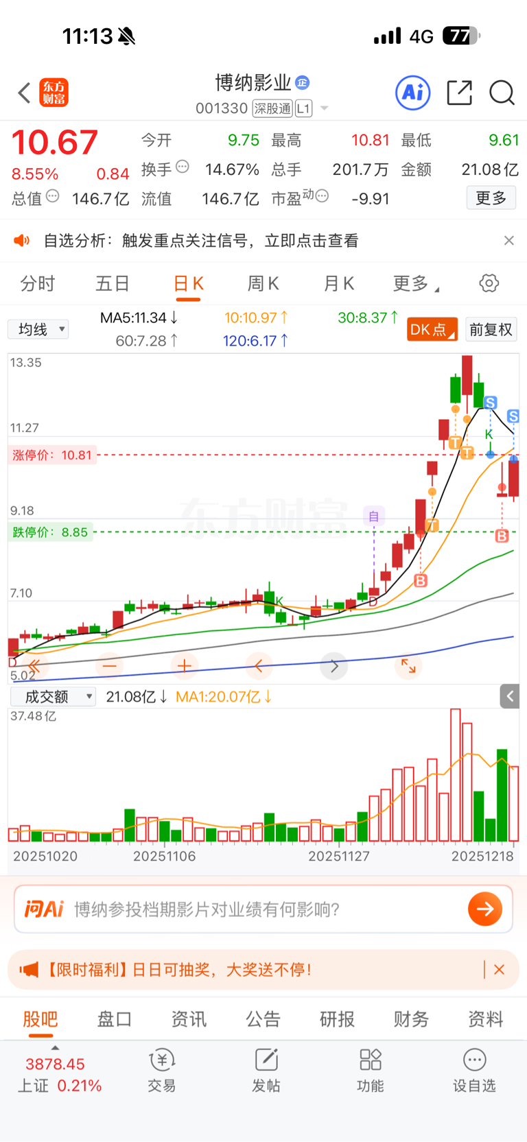 自从进了博纳,不是涨停就是跌停,真是刺激