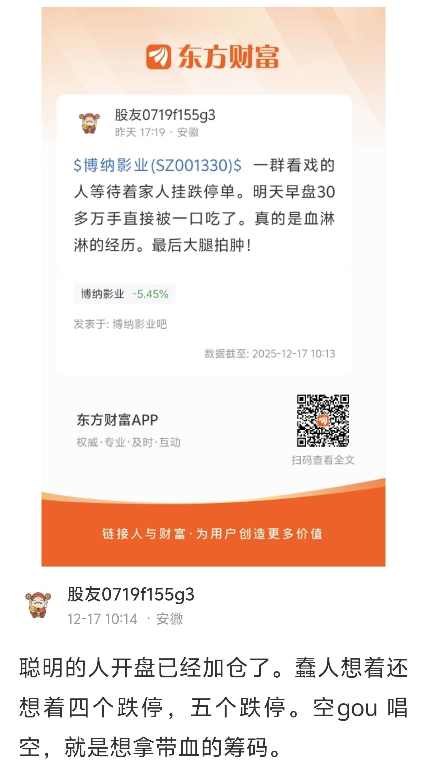$博纳影业(SZ001330)$ 昨天卖飞的家人们是不是大腿拍肿了,阿凡达3好评如潮。可能是今年全球最火的电影之一。逻辑是没有问题的。好好拿住。
