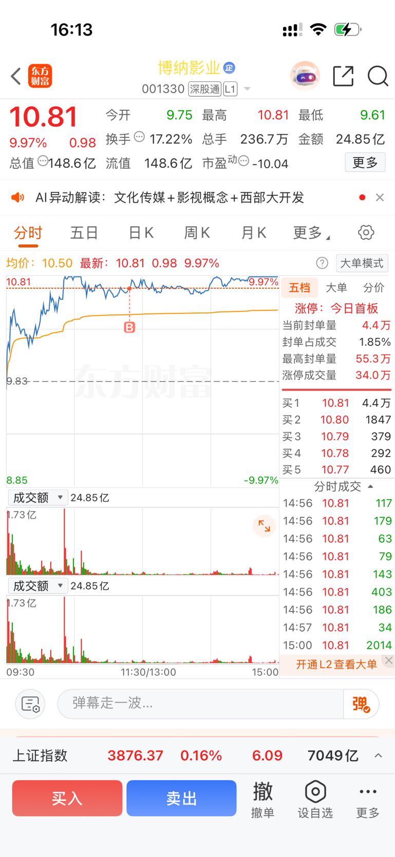 $博纳影业(SZ001330)$ 搞不清楚,你们怕个啥?我今天顶着板进的都不怕,电影我看过了特效简直说牛的一逼,拿好收你的筹码别被骗走了,等着吃大肉