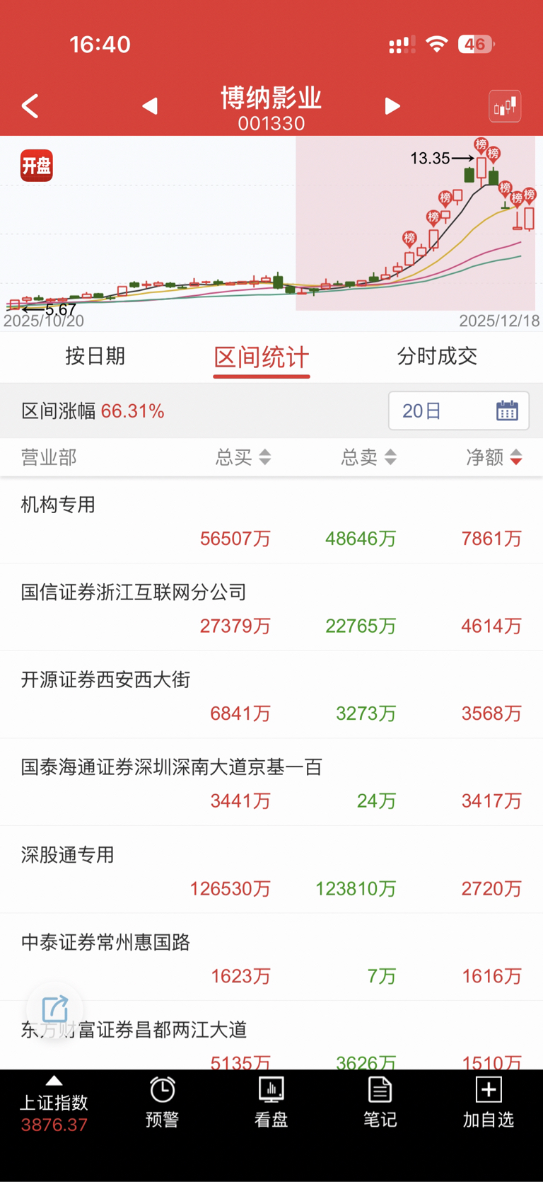 $博纳影业(SZ001330)$ 20日区间能看出家人们还有1000多个。这票主要三个深股通,机构,国信互联网分公司。