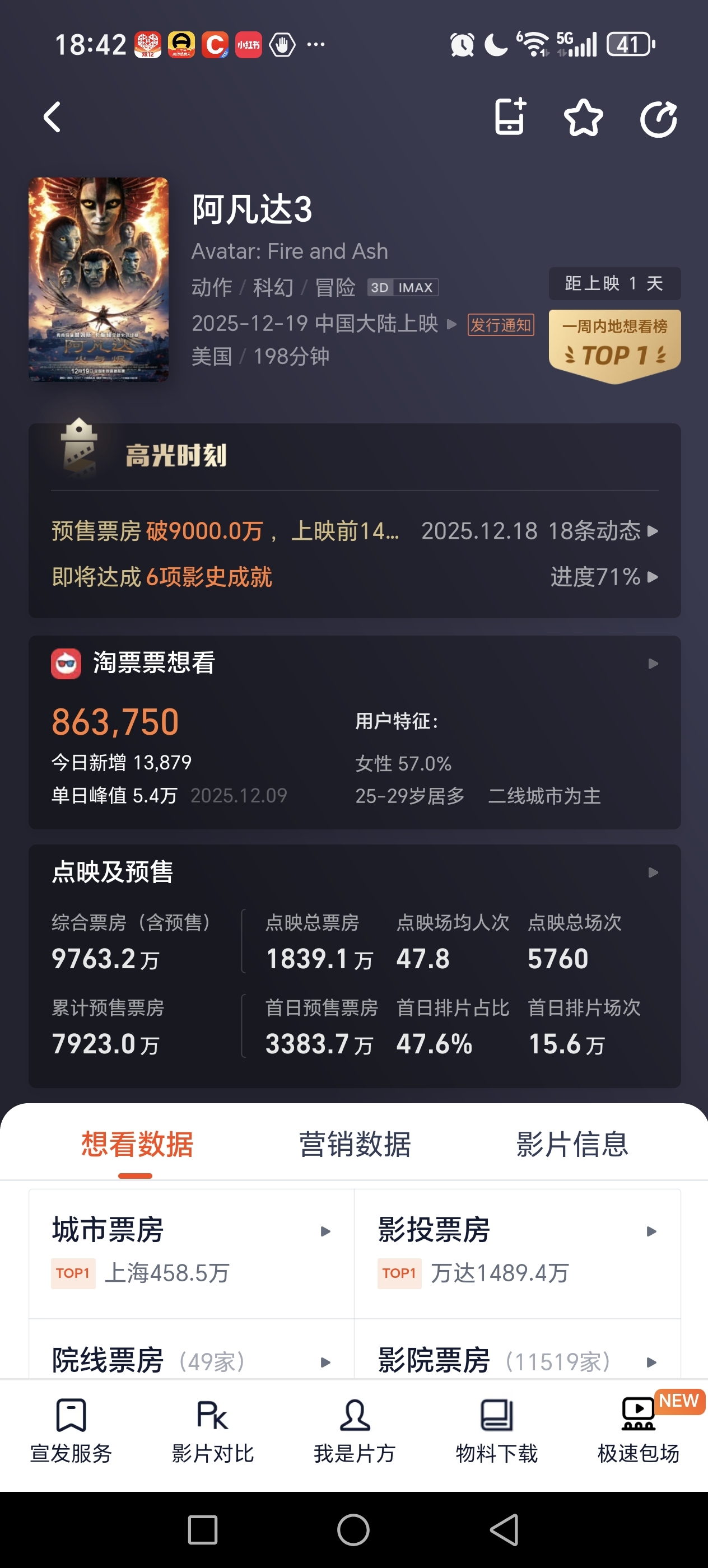 $博纳影业(SZ001330)$ 目前10分钟的增长量70万票房。