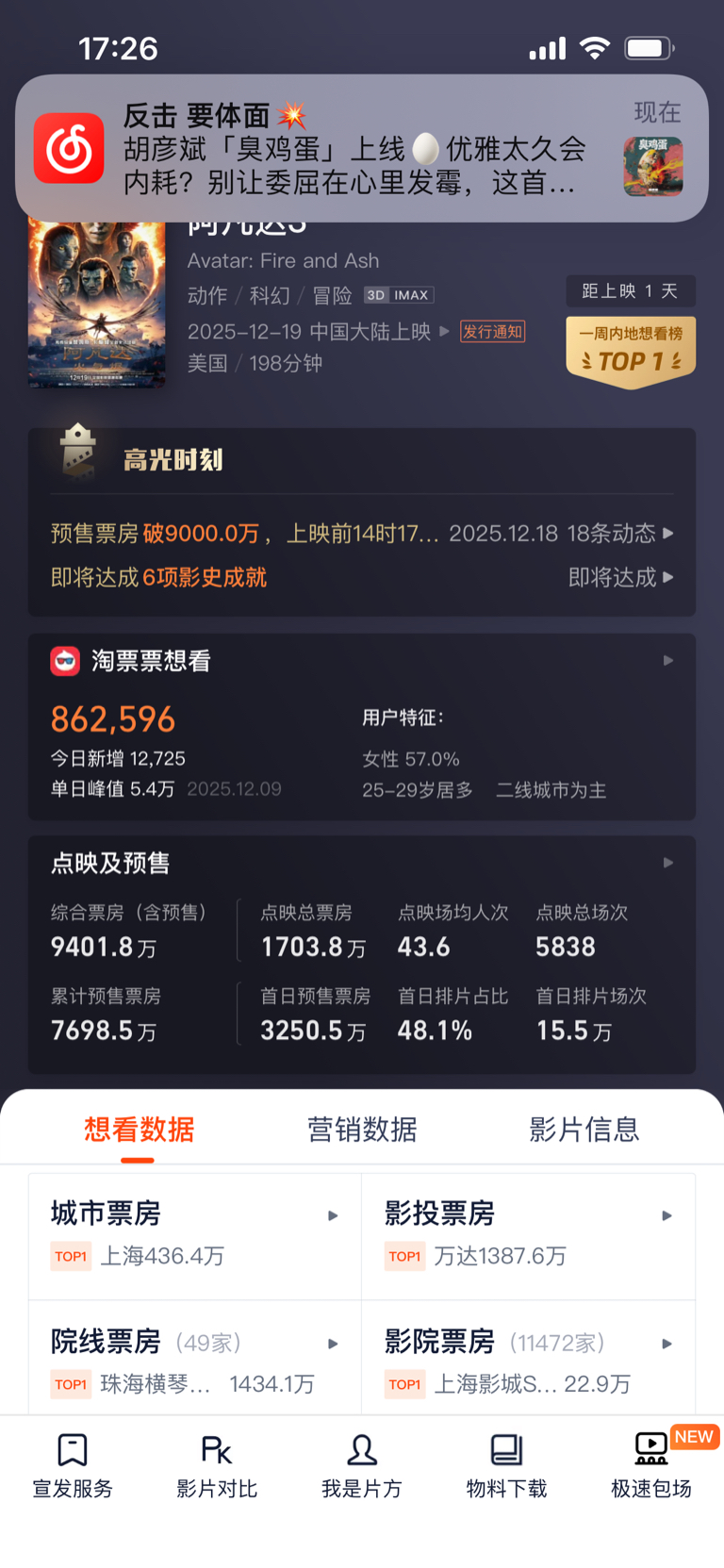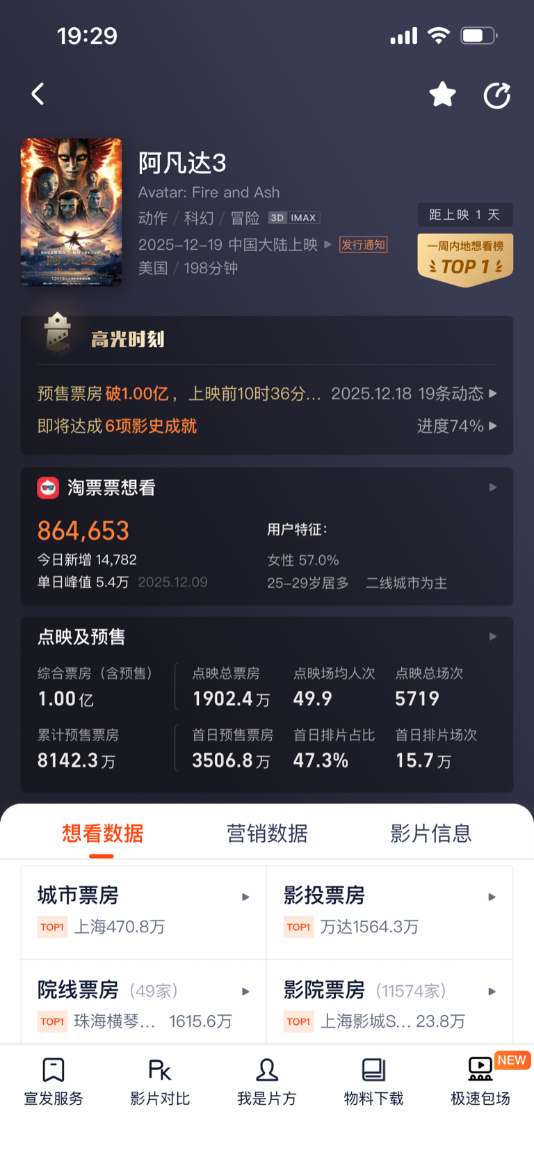 两小时600万明天上午1.5亿,周六末3亿没啥问题吧