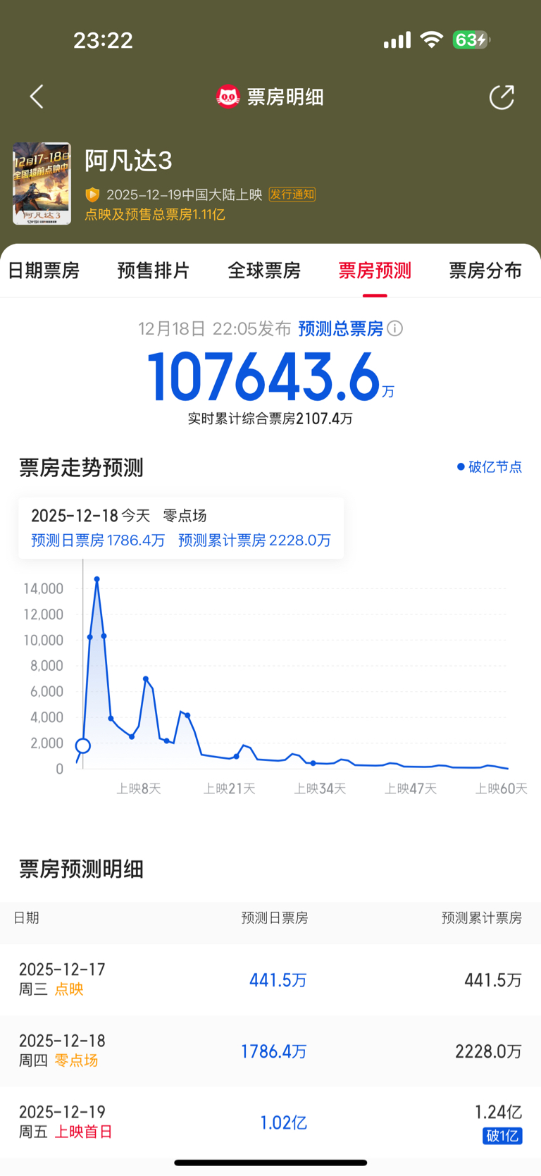 $博纳影业(SZ001330)$ 猫眼预测阿凡达才10亿票房,预期已经低到谷底了,周末应该会好