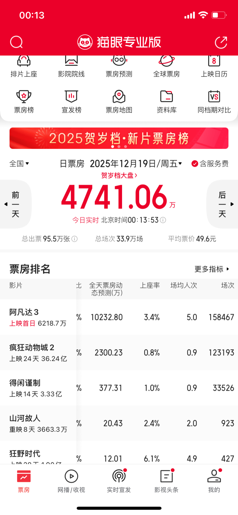 $博纳影业(SZ001330)$ 上座率有点低哦