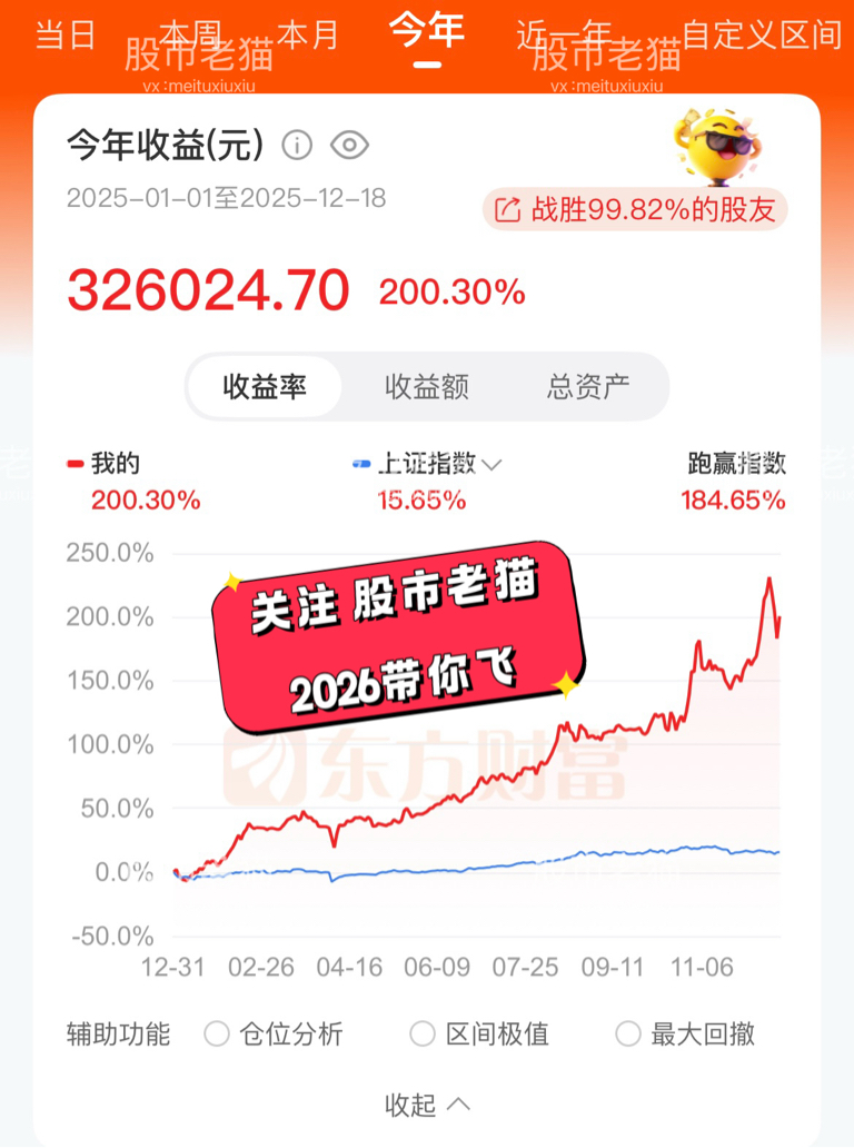 2025收宫之战,感谢博纳主力,17号拉板让我出清,2025年度结束了,博纳三个地板让我盈利从最高峰230%降到了180%,靠着16号尾盘加仓,17号高位卖出,勉强赶到200%。