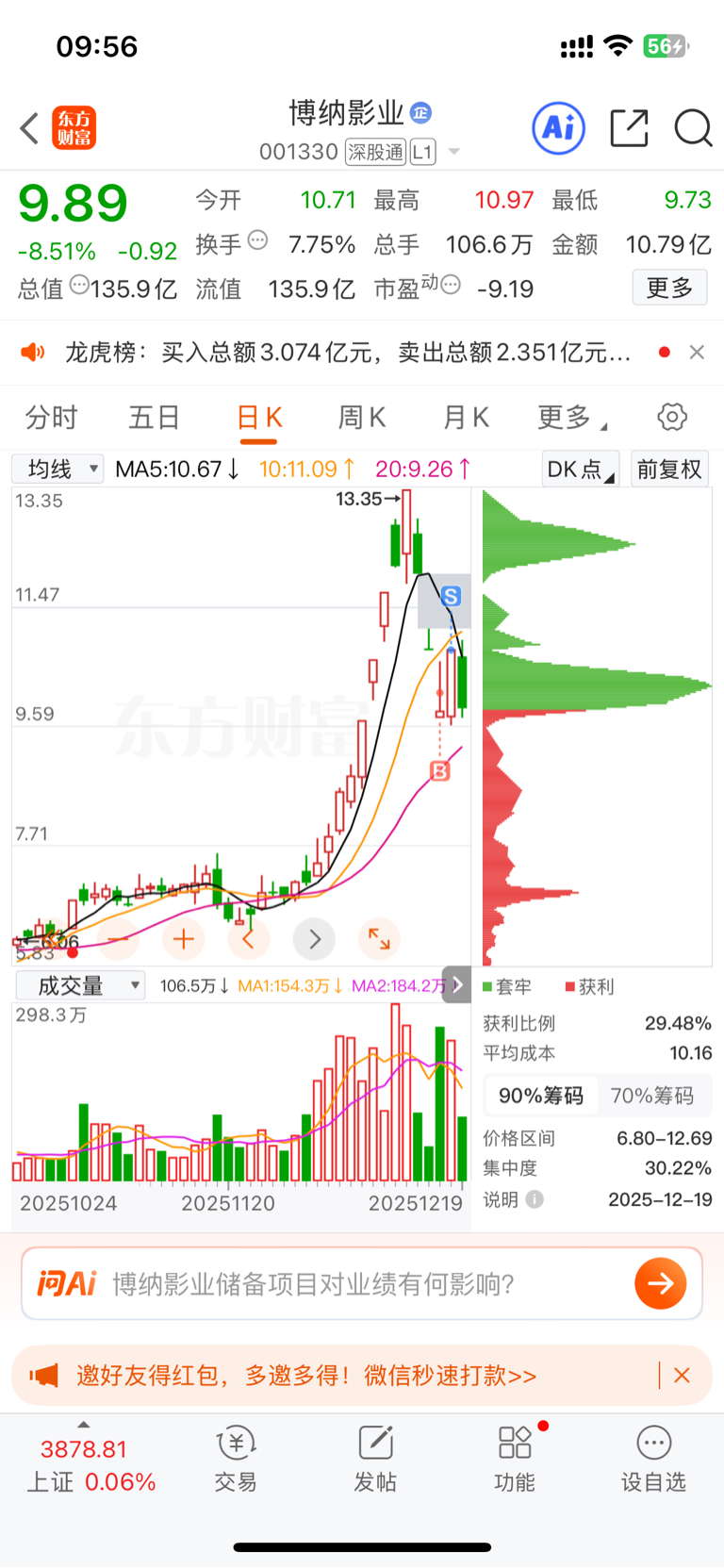$博纳影业(SZ001330)$ 精准抓住涨停那一天