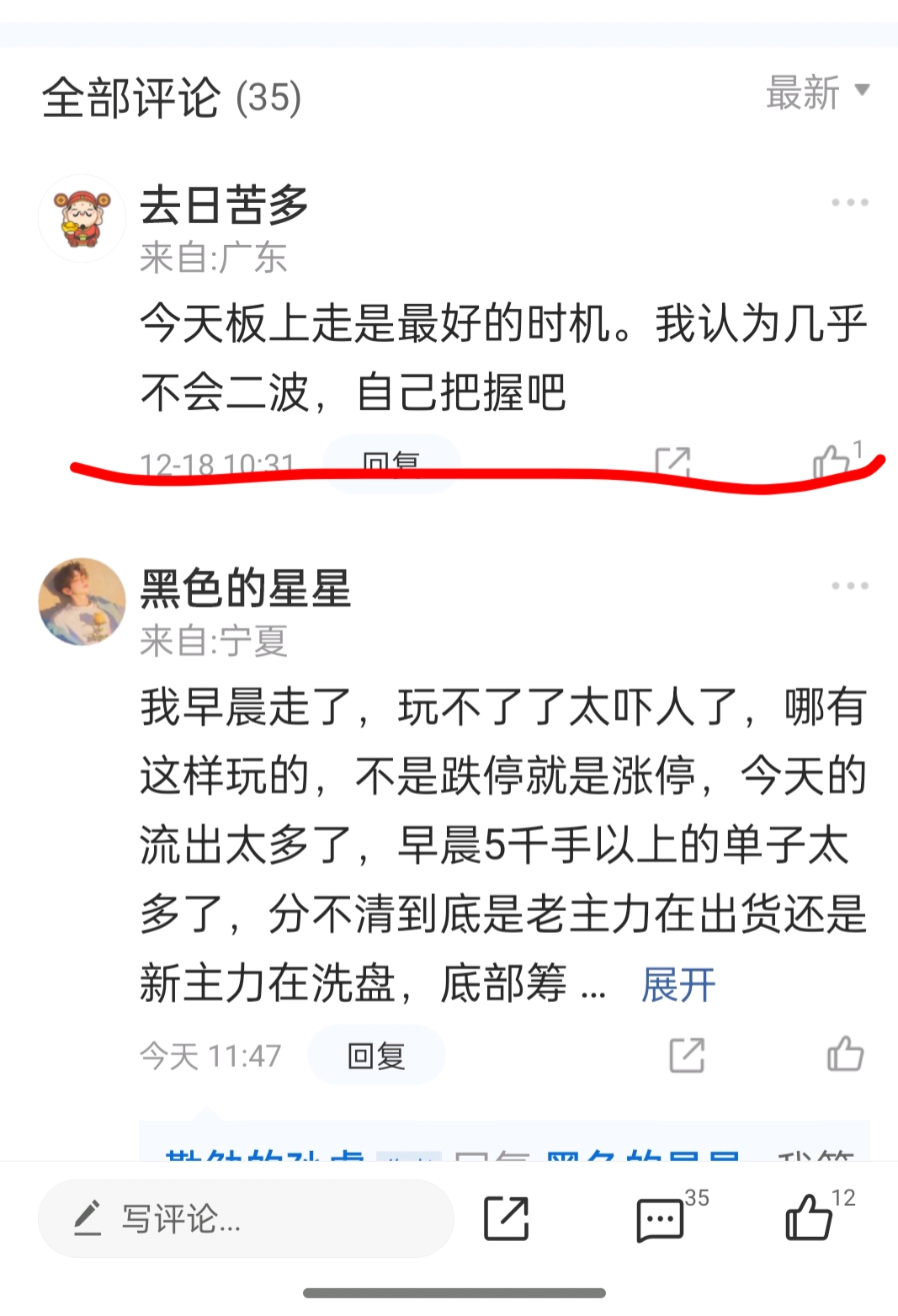 K线走成这样其实很简单,17日抄底资金只是拿了个先手,点映过后真实口碑还没出来,和首映还有两天的时间差。随便点个火,抄底的散户就跟了,而先手资金在撤退。明天裤子就要脱了,今天不崩留着过年嘛?