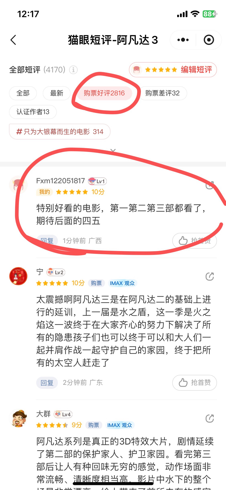 $博纳影业(SZ001330)$ 大家都去猫眼网好评吧,口碑越好,越多人看,本来也是一部大片,差不到哪里去