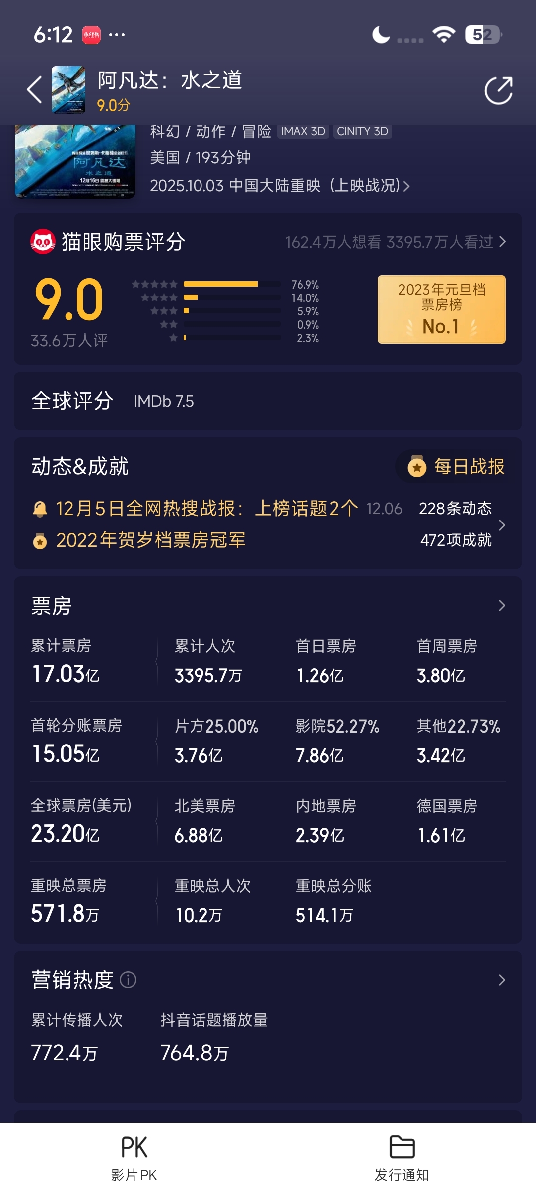 阿凡达2首日票房1.26亿首周票房3.8亿就看3能不能超过它周一之前达到5亿就有