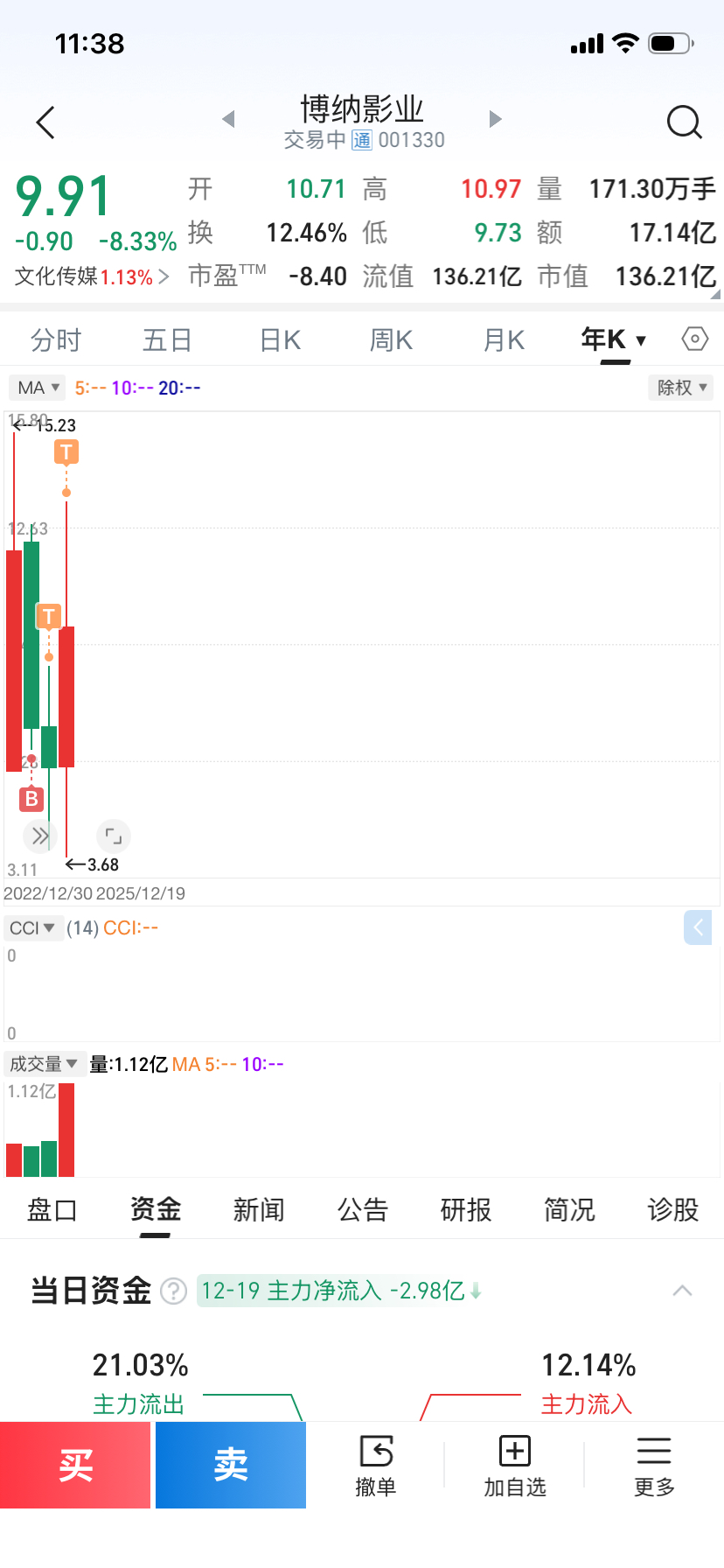 $博纳影业(SZ001330)$ 这只票之前被套了3年,今年回本小赚就走了