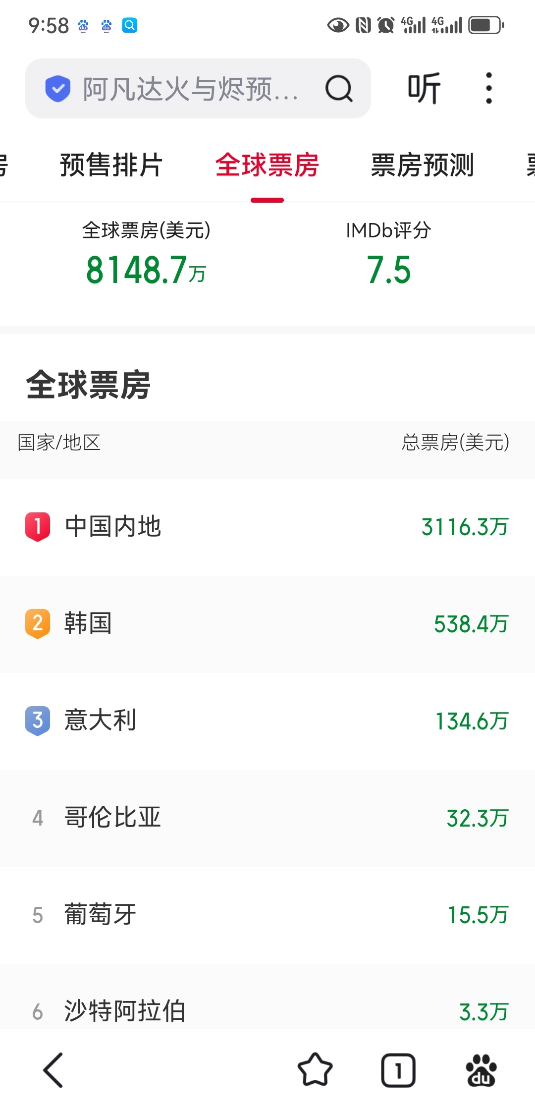 $博纳影业(SZ001330)$ 全球票房来了,这才是真正的博纳