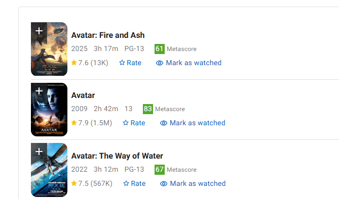 imdb上分数已经到7.6了超越阿凡达2了,还能有波期待