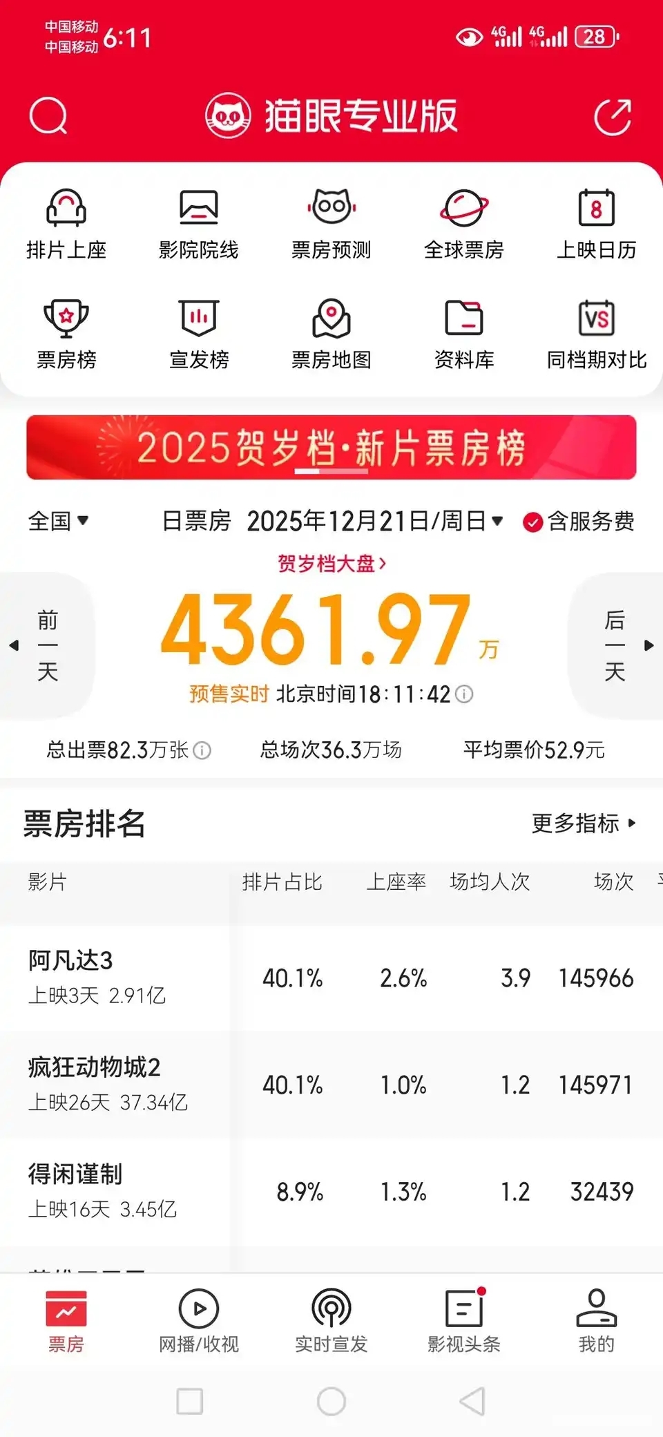 $博纳影业(SZ001330)$ 下周一比谁跑得快了,上映第3天排片比例被26天的动物城反杀,还在的建议赶紧跑吧,圣诞前再观望下。