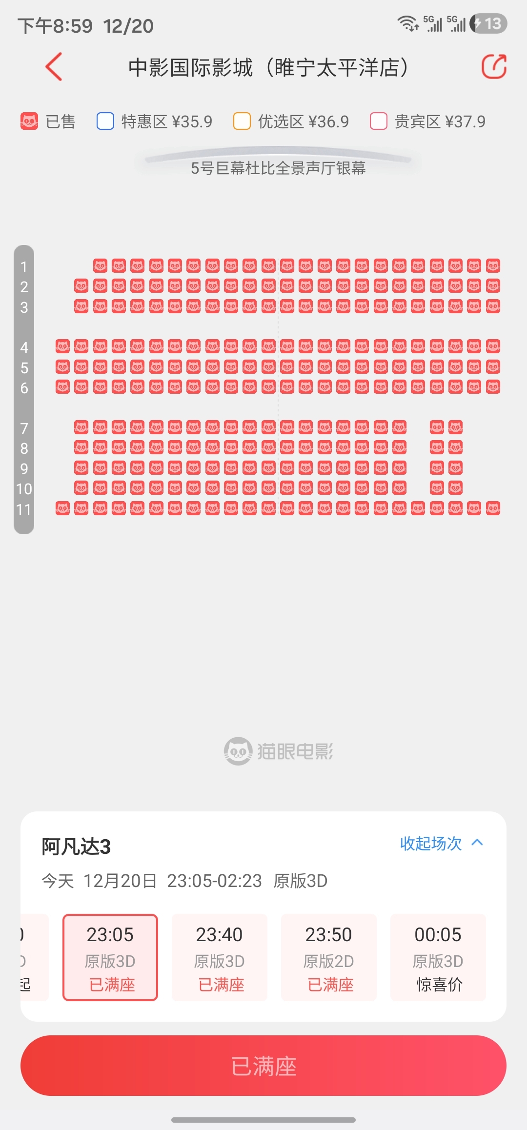 $博纳影业(SZ001330)$ 18线小县城,这个点全满座