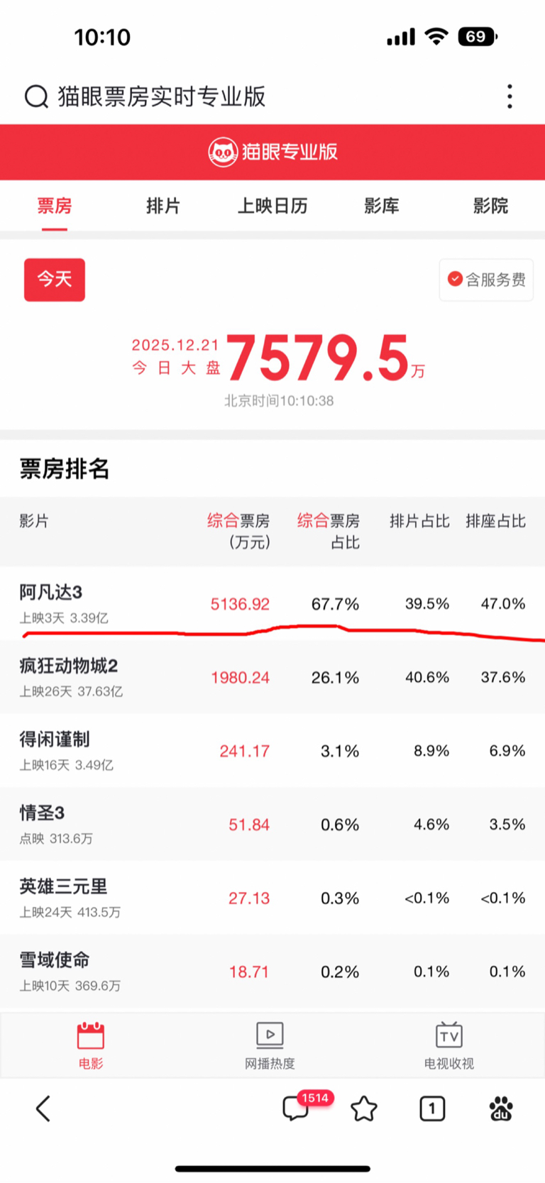 $博纳影业(SZ001330)$ 国内目前3.39亿
