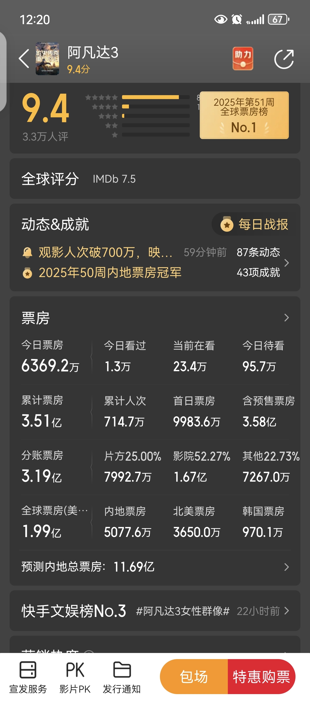 《阿凡达3》全球收益占比的确切数值, 据市场披露及测算的信息来看,其出资4000万美元占该项目5%-8%的份额,可参与该片全球票房12%-18%的分成,同时还能拿到约5%的衍生品收入。