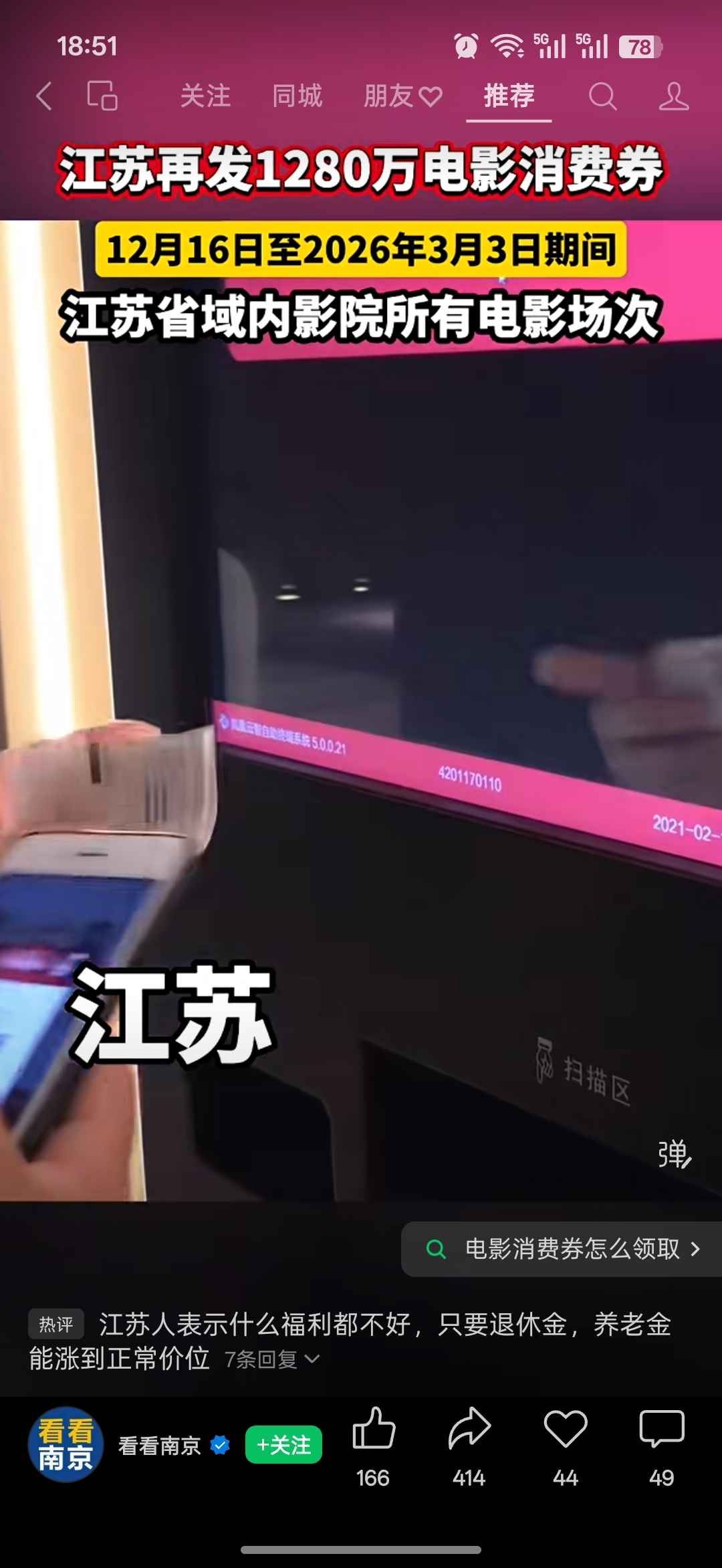 $博纳影业(SZ001330)$ 江苏发1280万电影消费券啦