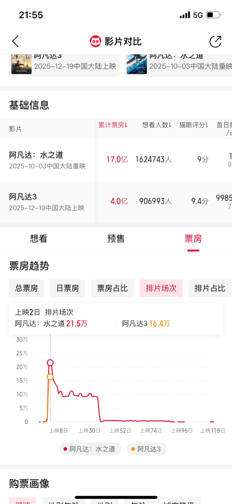 这些是可以自己去看的,阿凡达2根本无法比,排片比阿凡达3多,票房还没阿凡达3高,