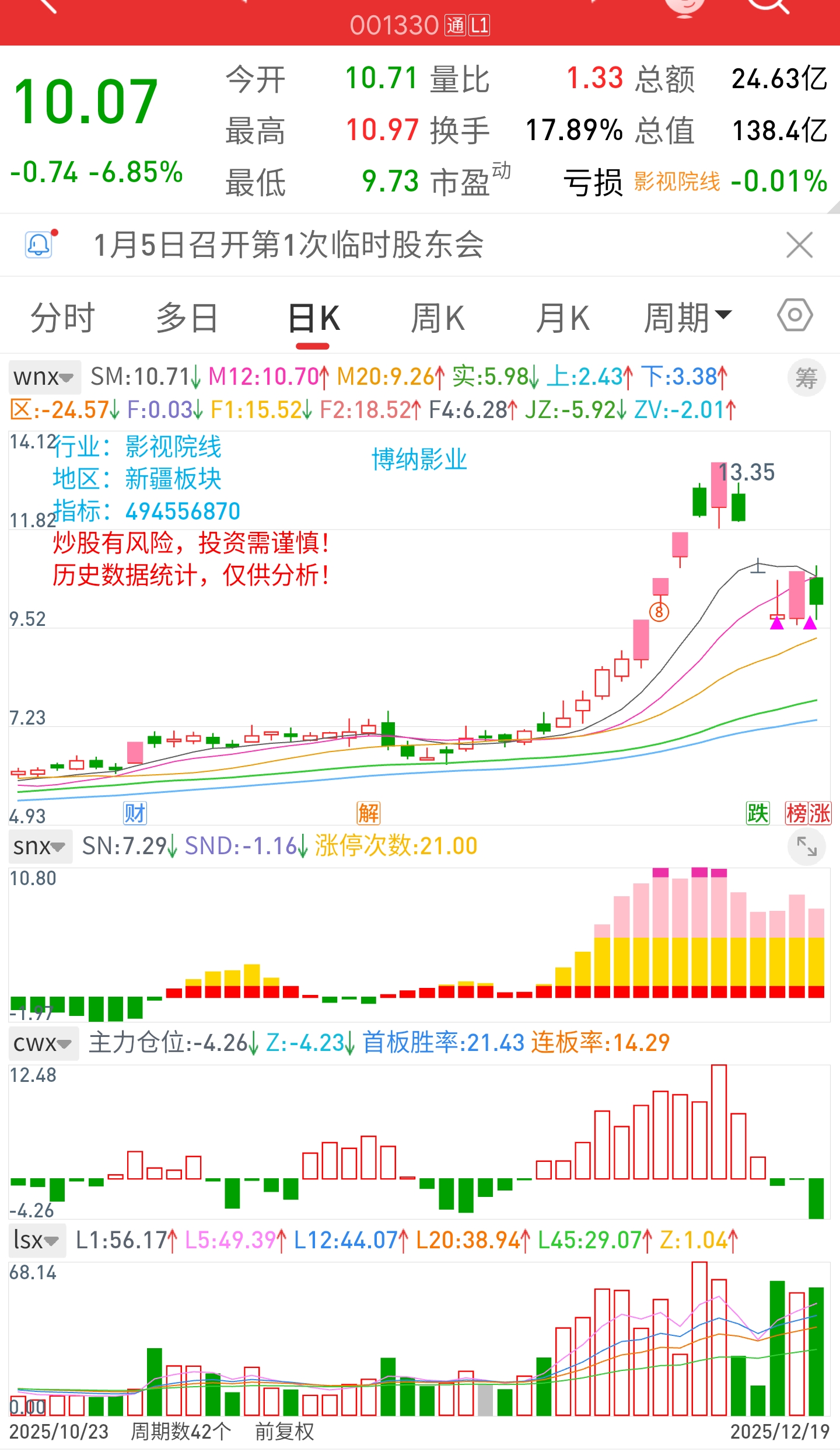 $博纳影业(SZ001330)$ #炒股日记# #复盘记录# #强势机会# #股市怎么看# #收盘点评# k线上是乘风形态的回调阶段。大阴线没有跌破前一根阳线的开盘价,还有转寰可能。