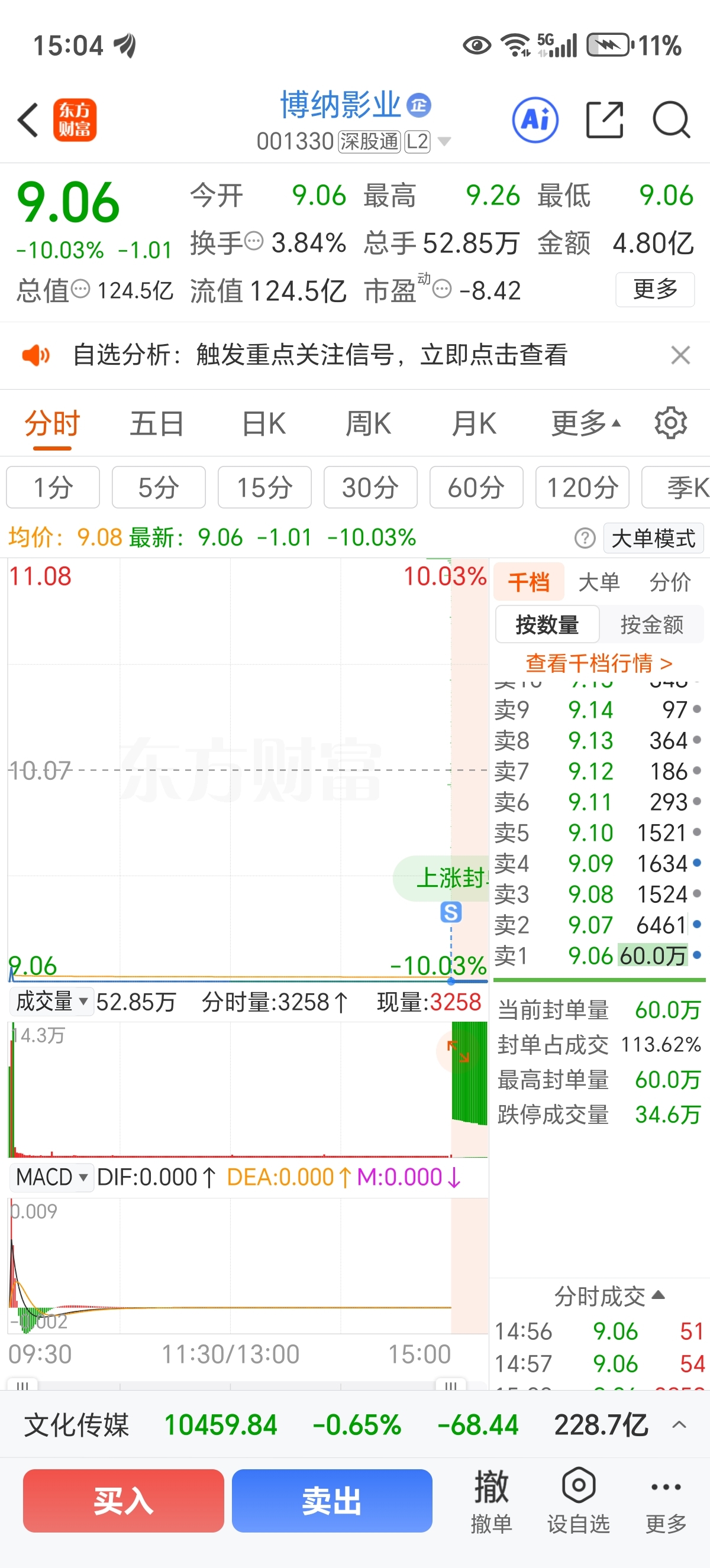 $博纳影业(SZ001330)$ 挂了一天竟然跑出来了