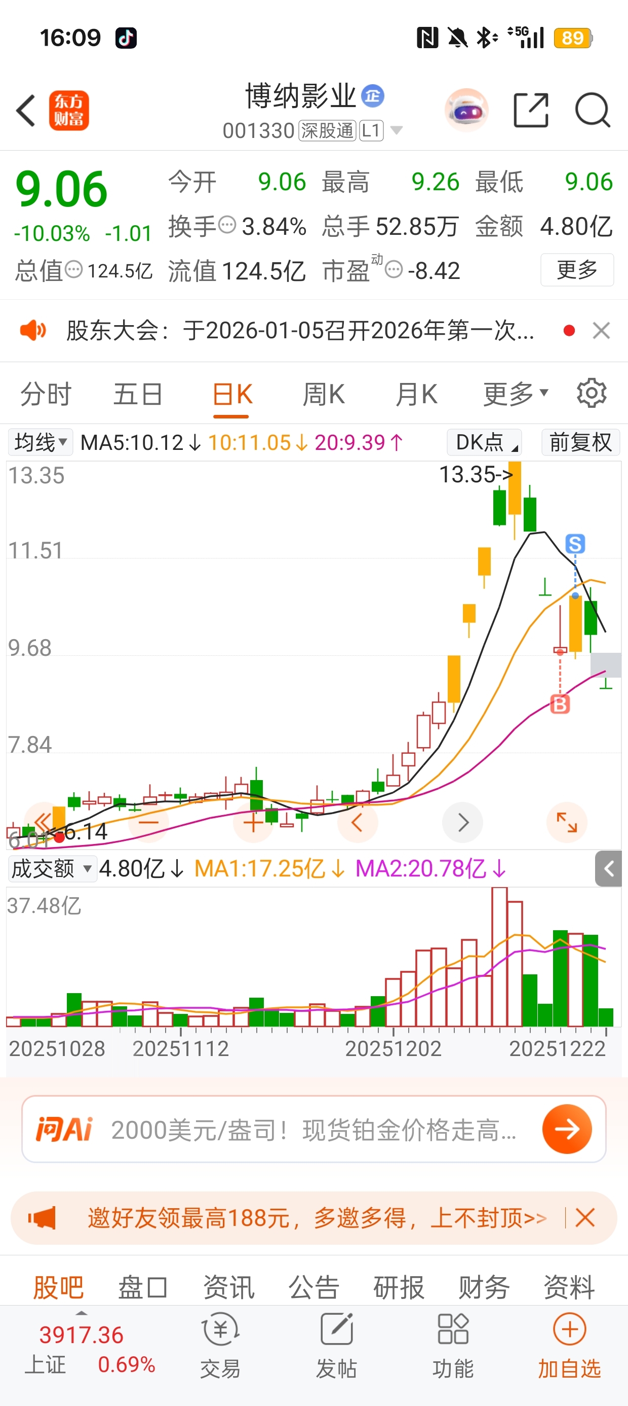 $博纳影业(SZ001330)$ 炒股别贪心,吃个诱多的钱就走