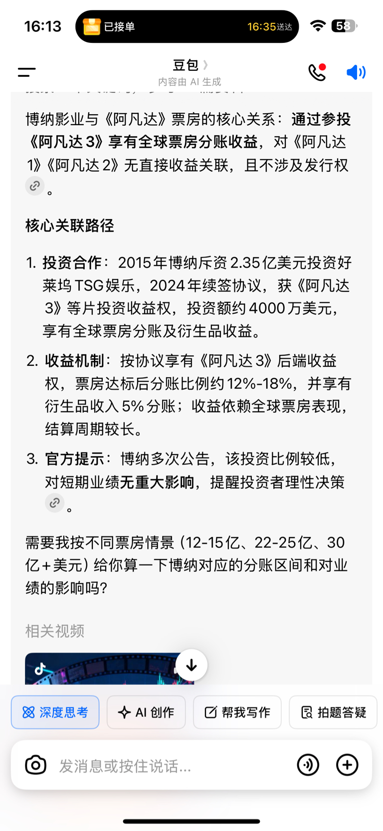周五入场,拿到元旦按协议享有《阿凡达3》后端收益权,票房达标后分账比例约12%-