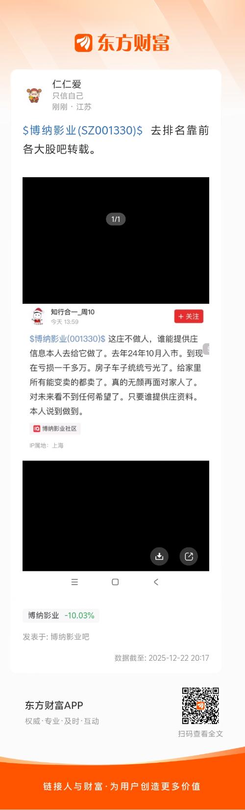 $博纳影业(SZ001330)$  去排名靠前各大股吧转载。