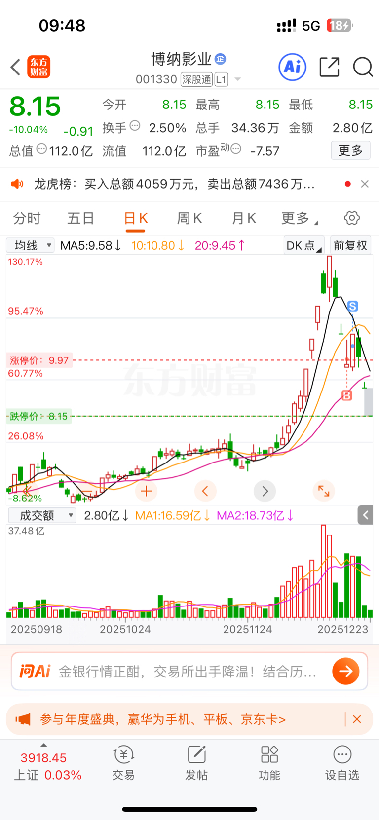 $博纳影业(SZ001330)$ 还好跑得快,这种跌法谁顶得住