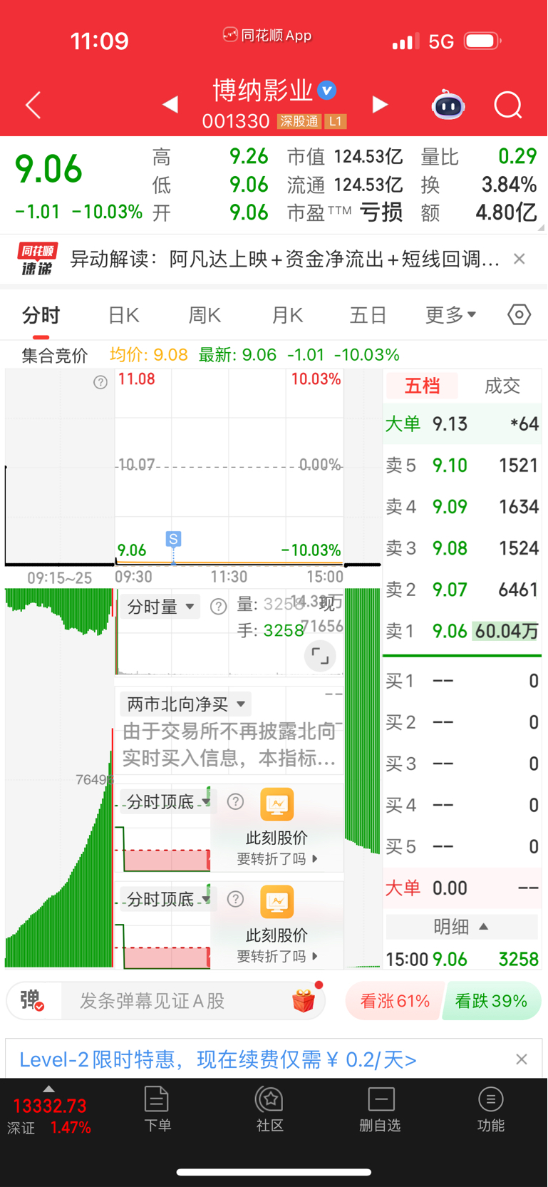 $博纳影业(SZ001330)$ 不能犹豫一点,即使明天再来个跌停,我也不会再进来了,果断拉黑