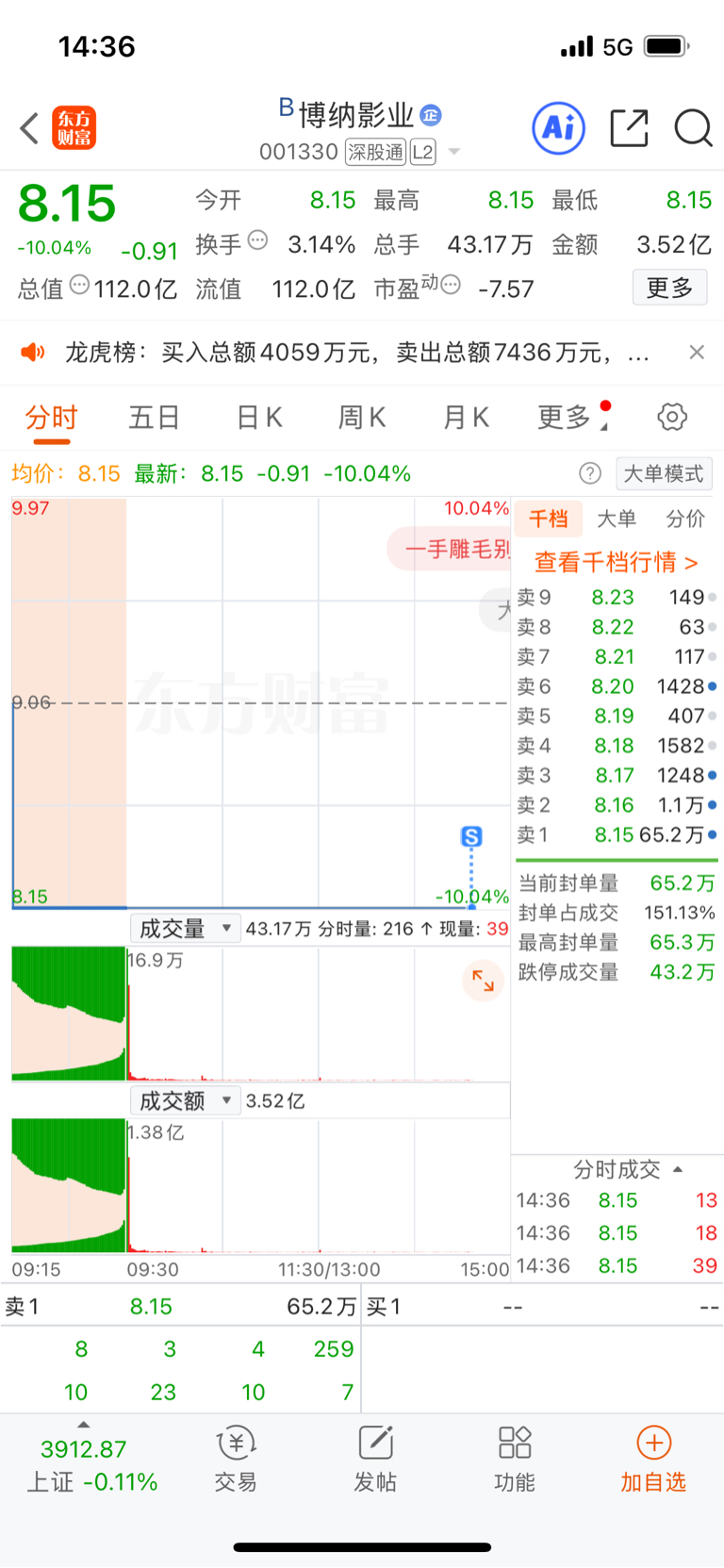 $博纳影业(SZ001330)$ 9点30的,出来了,感谢感谢,里面的老铁,加油